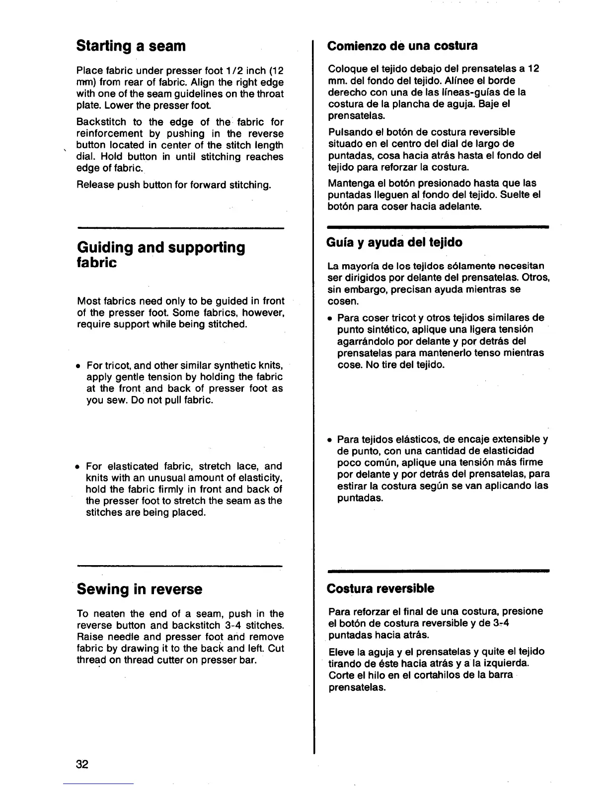 Singer 1802 - Starting a Seam; Guiding and Supporting Fabric; Sewing in Reverse