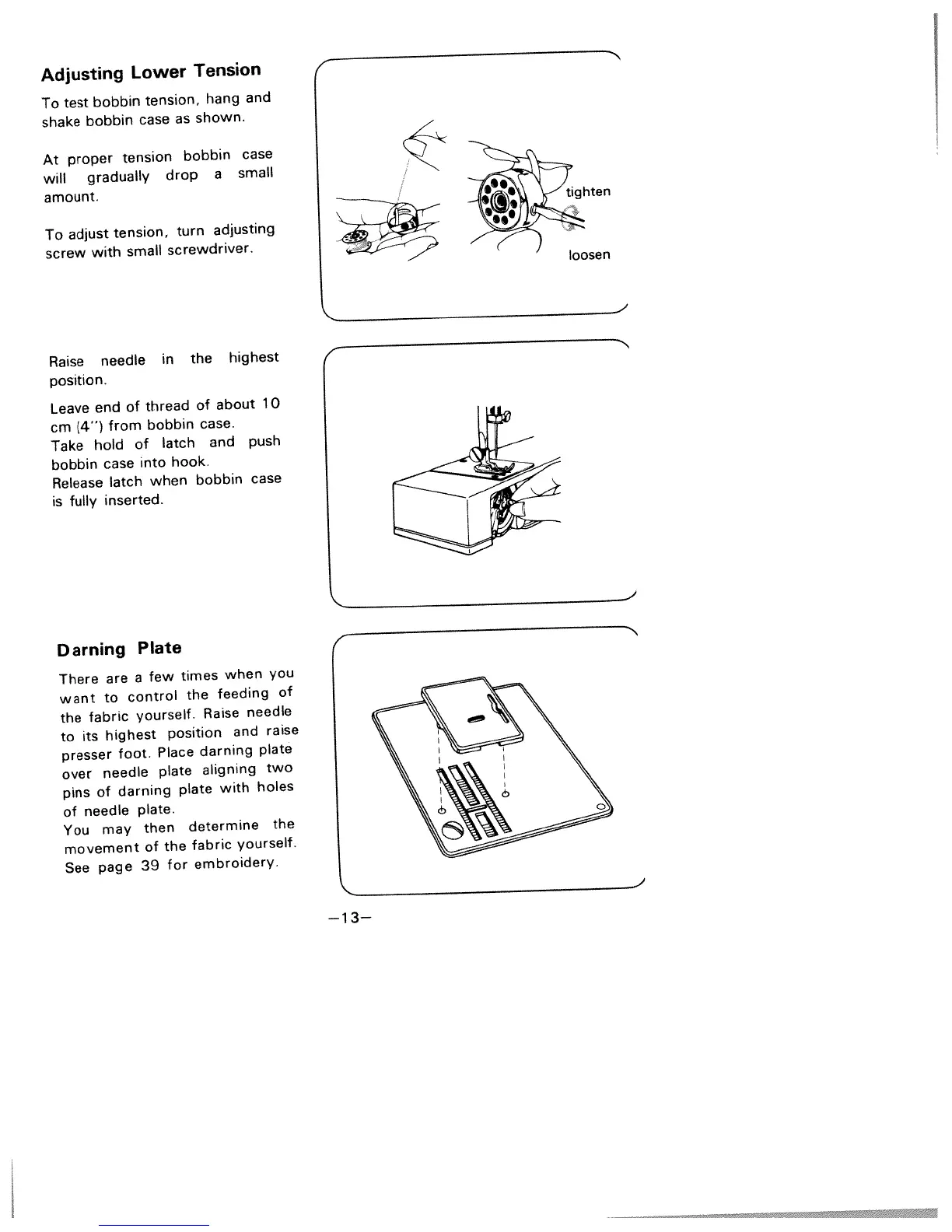 Singer 1805 - Adjusting Lower Tension; Darning Plate
