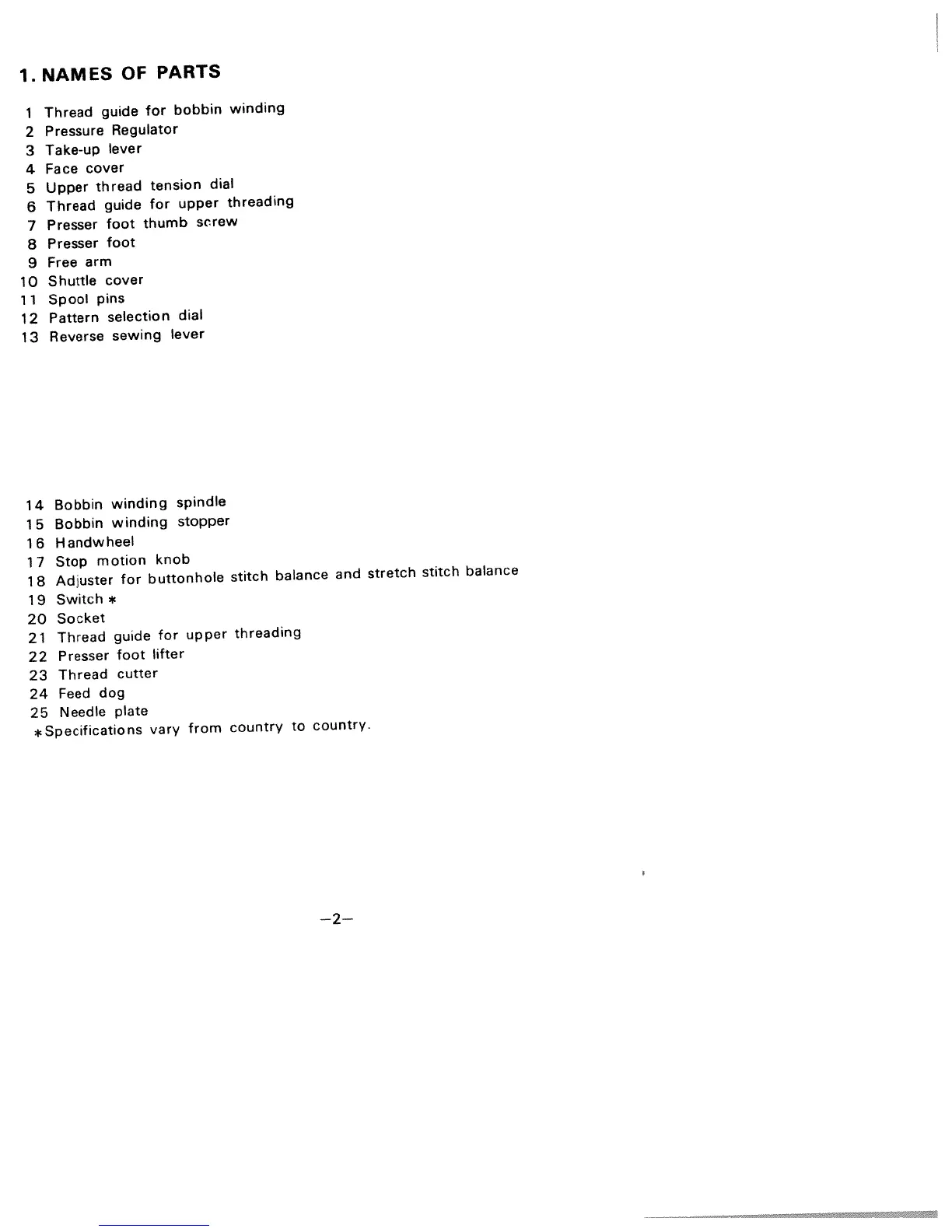 Singer 1805 - Machine Setup and Threading; Parts Identification and Accessories