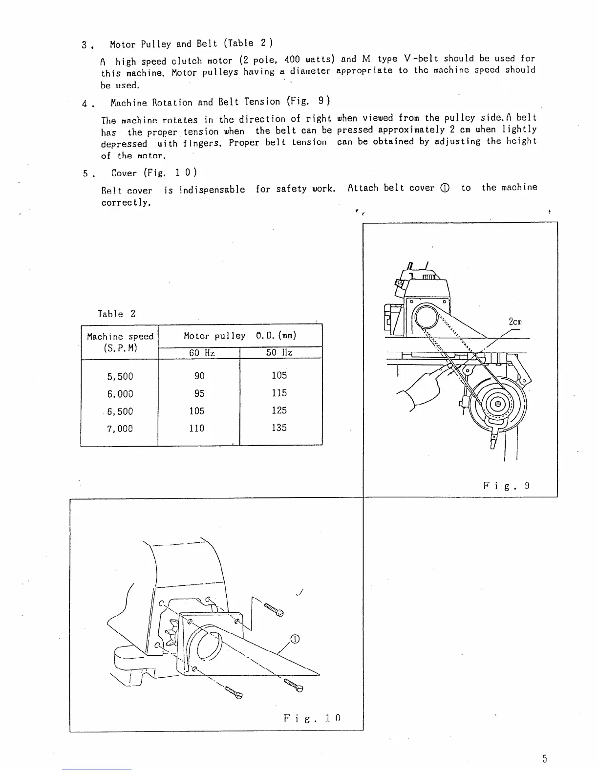 Singer 1831U - Motor, Pulley, and Belt Selection; Machine Rotation and Belt Tensioning; Belt Cover Attachment