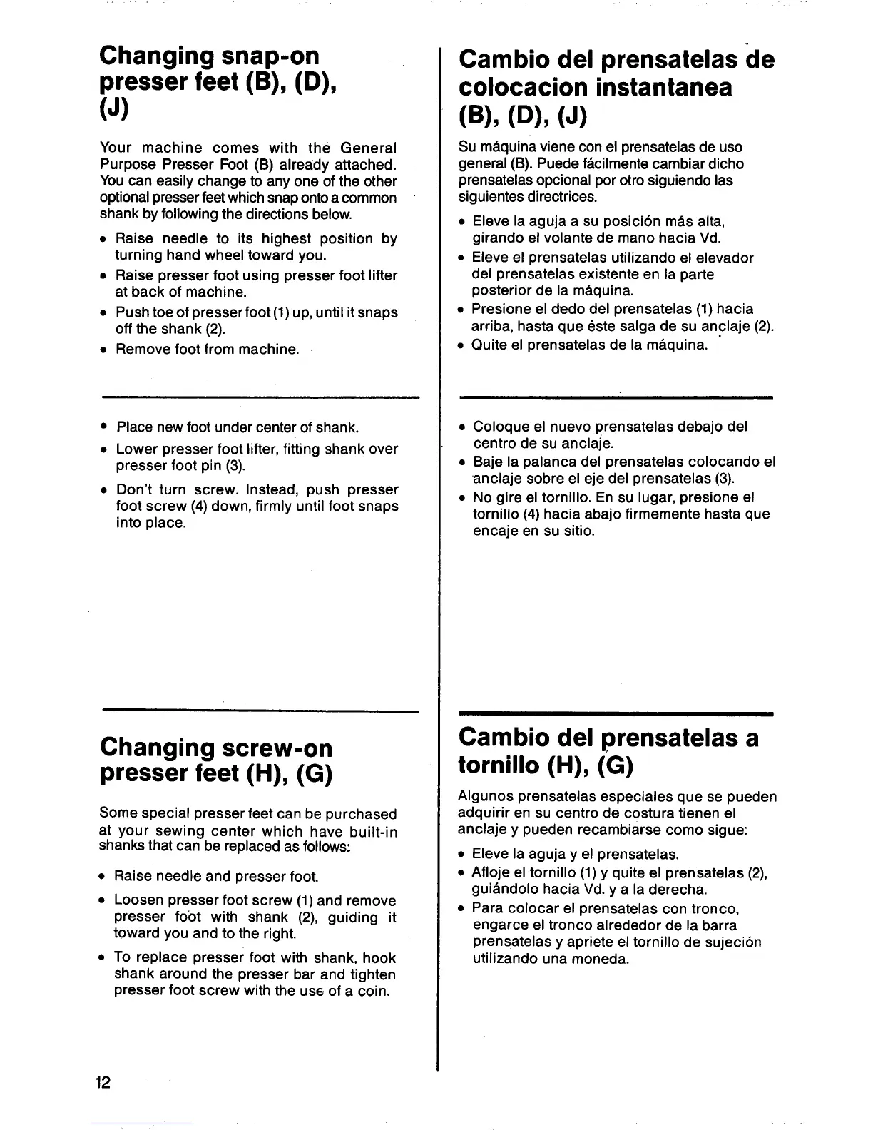 Singer 1872 - Changing Snap-On Presser Foot (B),(D),(J); Changing Screw-On Presser Foot (H),(G)