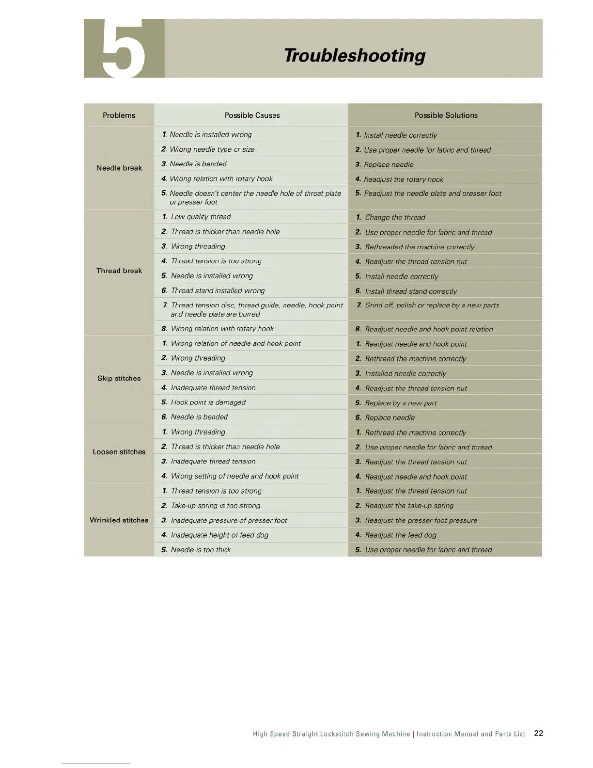 High Speed Straight Lockstitch Sewing Machine ! Instruction Manual and Parts List