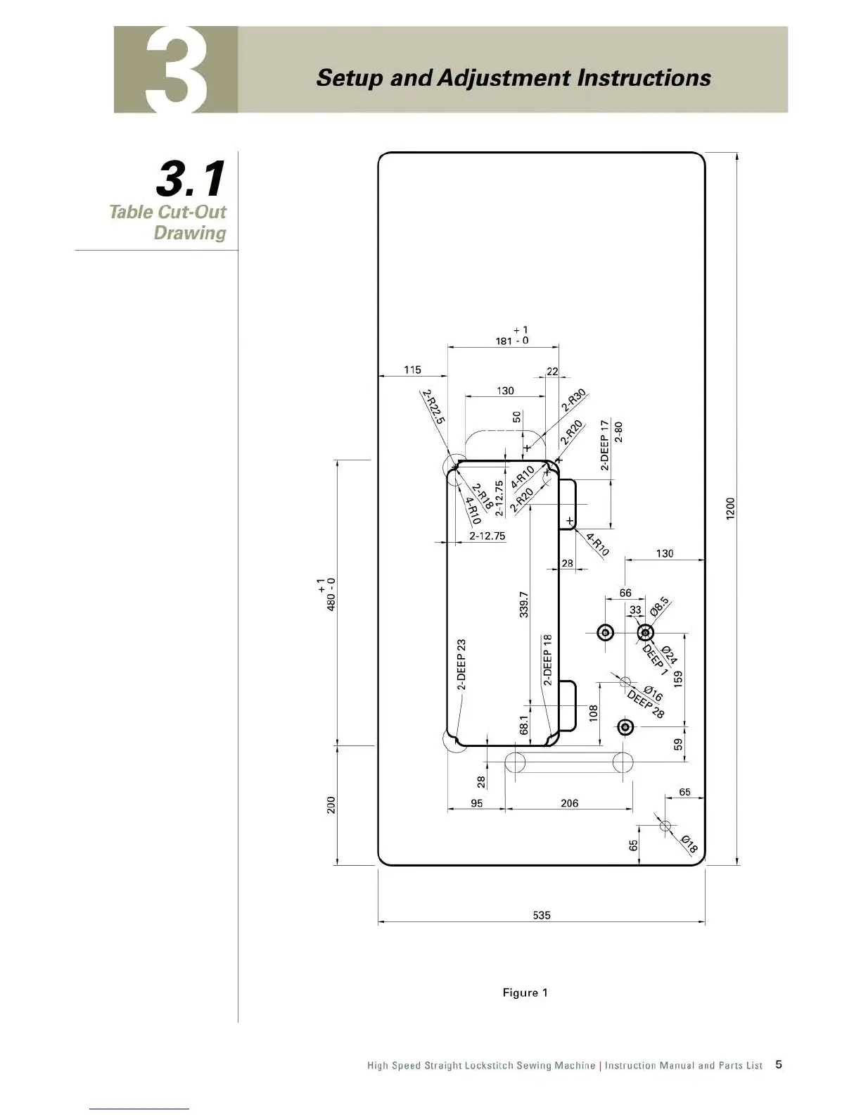 Singer 191D-20 - Setup and Adjustment Instructions; Table Cut-Out Drawing