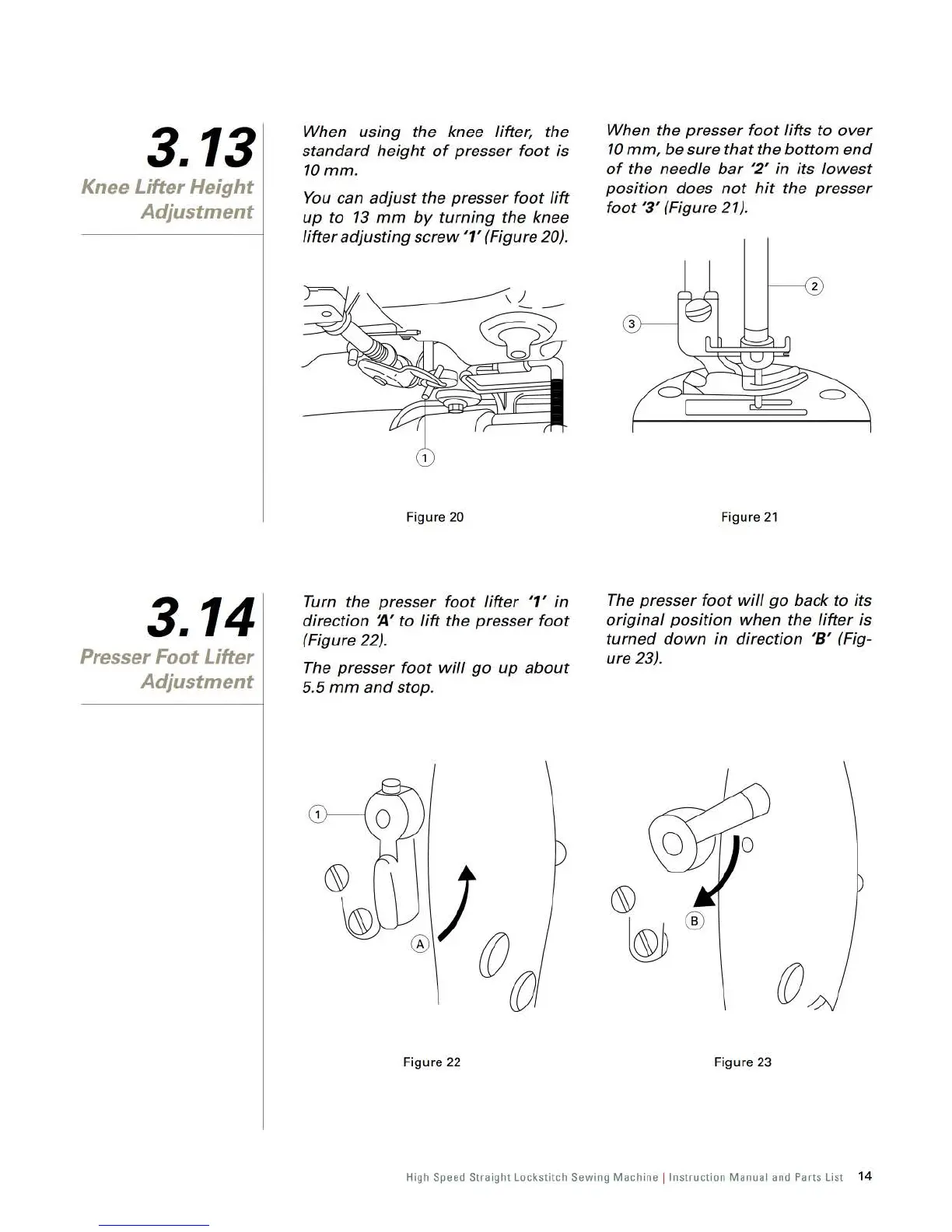 Singer 191D-30 - Knee Lifter Height Adjustment; Presser Foot Lifter Adjustment
