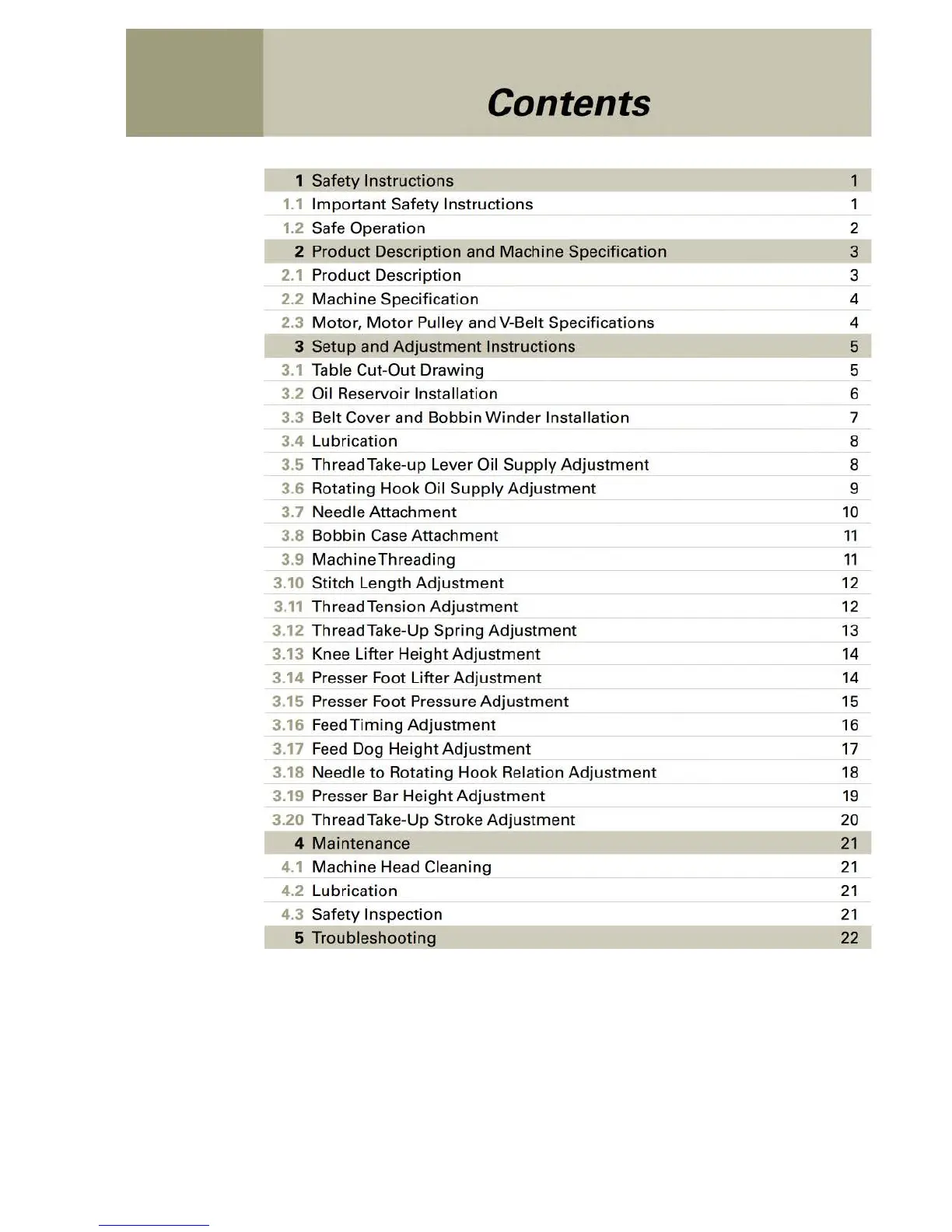 Singer 191D-30 - Default Chapter; Table of Contents