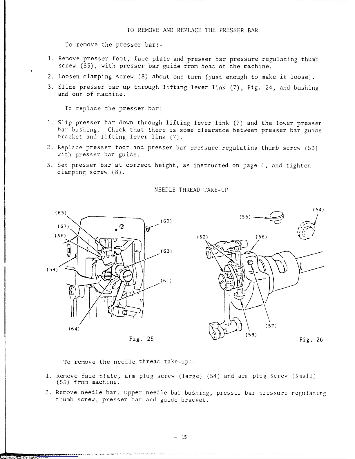 Singer 191D - To Remove and Replace the Presser Bar; Needle Thread Take-Up