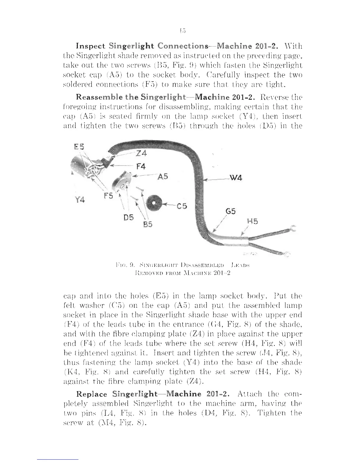 Singer 201-3 - Inspect Singerlight Connections - Machine 201-2; Reassemble the Singerlight - Machine 201-2; Replace Singerlight - Machine 201-2