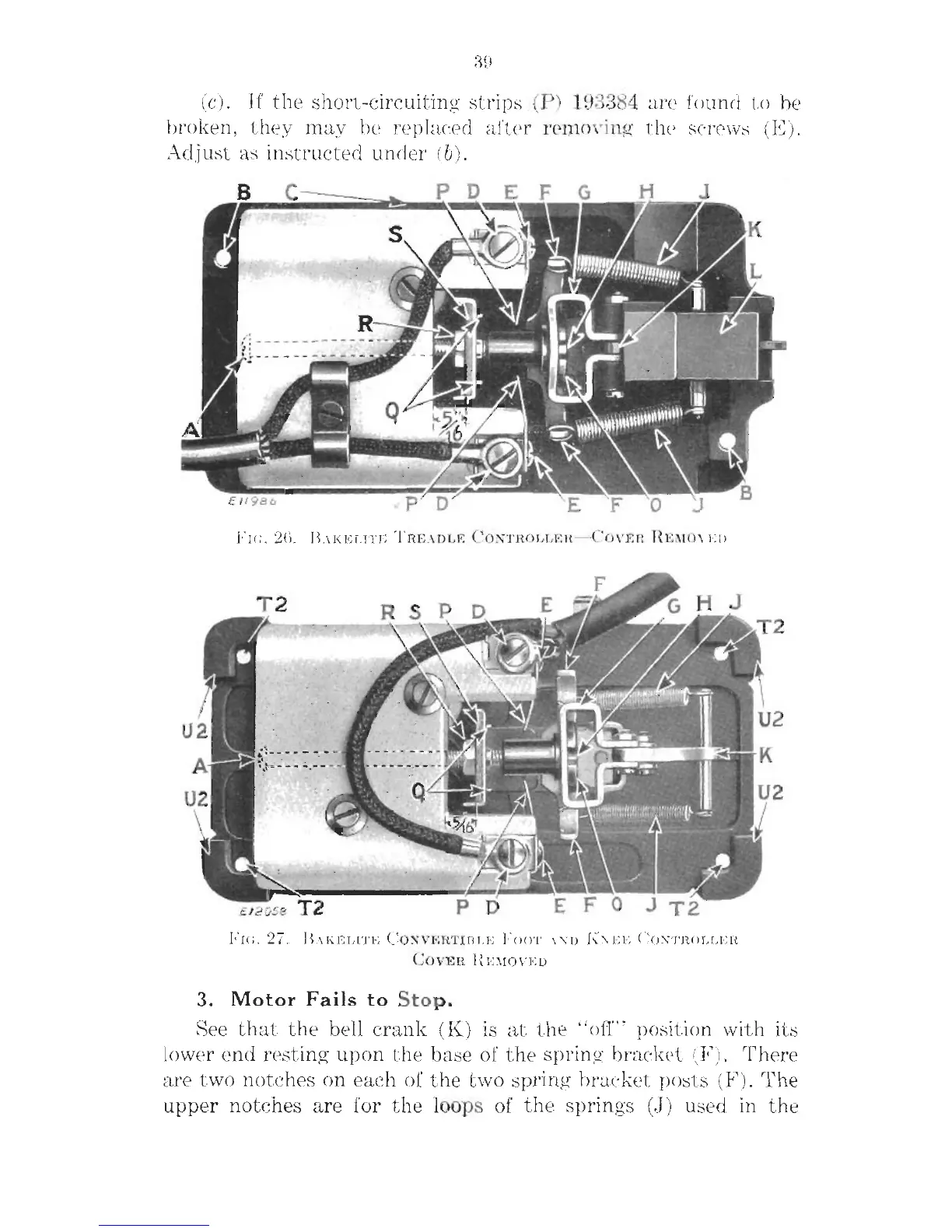 Singer 201-3 - Motor Fails to Stop; Bakelite Treadle Controller - Cover Removed View; Bakelite Convertible Foot and Knee Controller Cover Removed View
