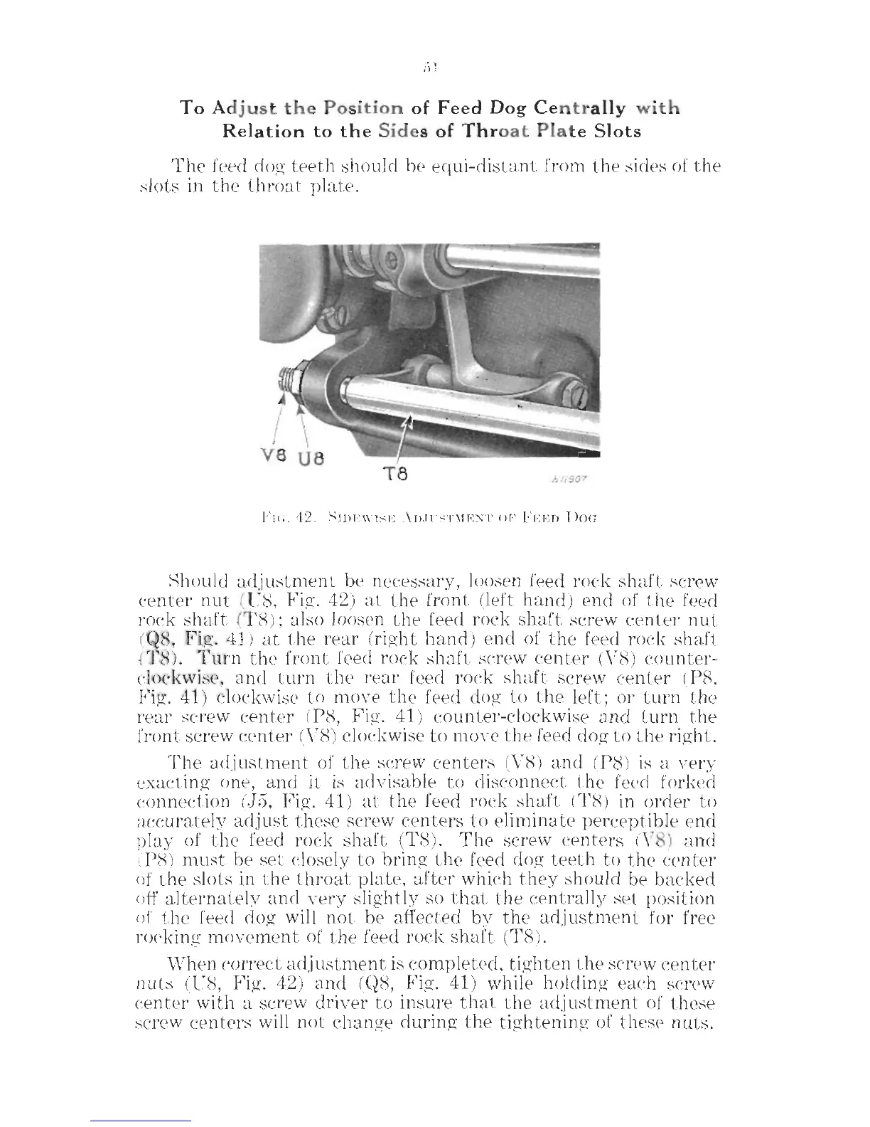 Singer 201-3 - To Adjust the Position of Feed Dog Centrally with Relation to the Sides of Throat Plate Slots; Sidewise Adjustment of Feed Dog