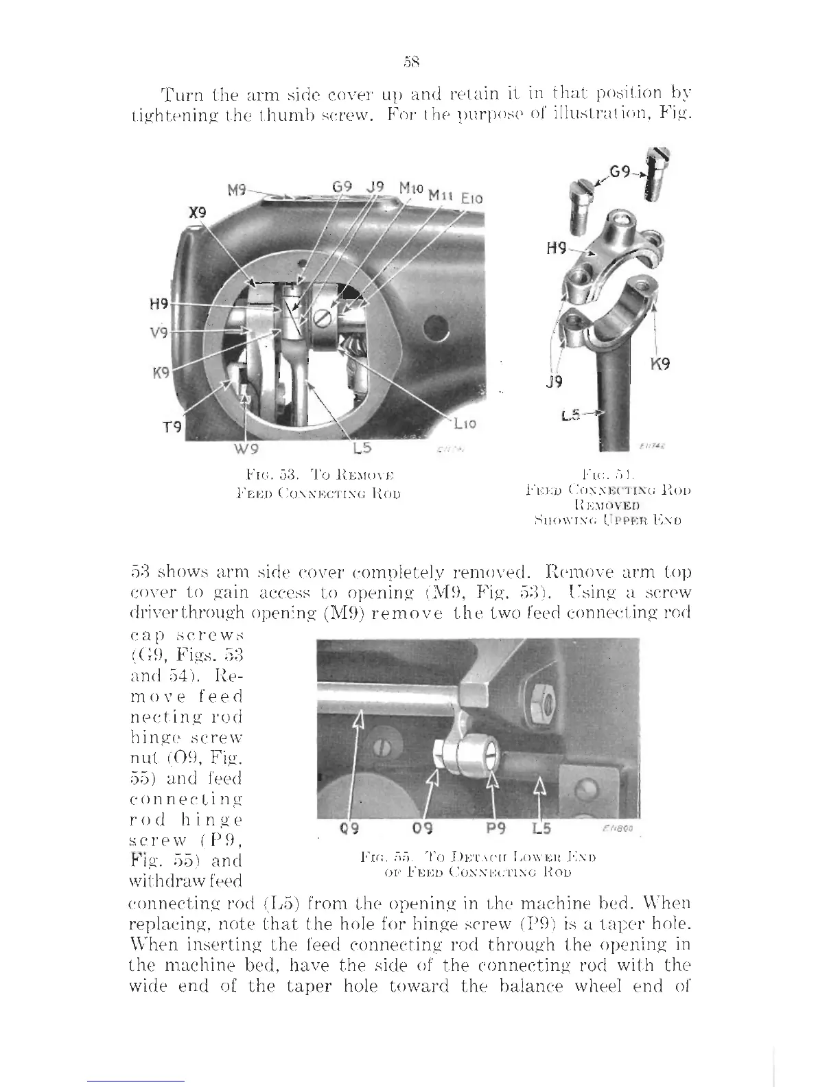 Singer 201-3 - To Remove Feed Connecting Rod; Feed Connecting Rod Removed - Upper End View; To Detach Lower End of Feed Connecting Rod