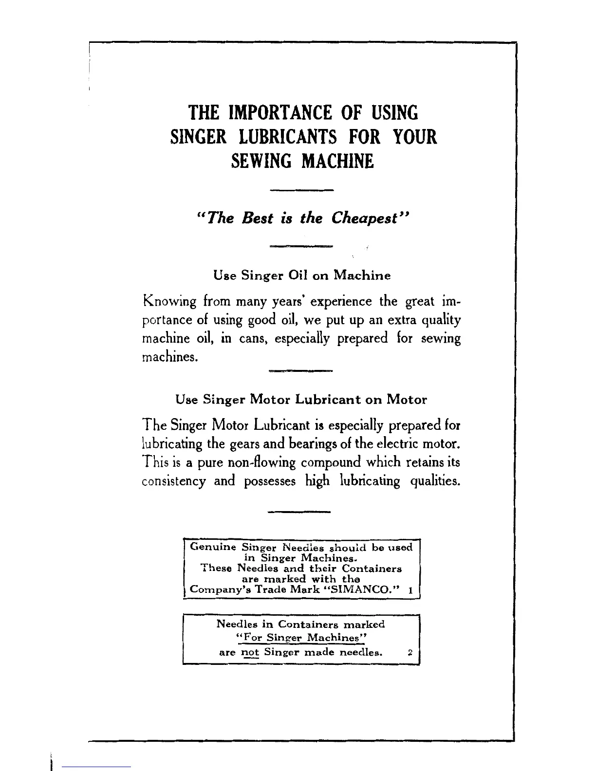Singer 201-3 - Using Singer Lubricants for Your Sewing Machine