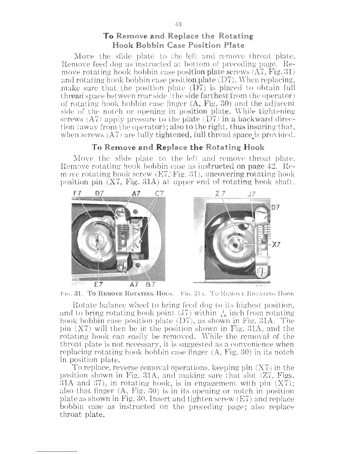 Singer 201-4 - To Remove and Replace the Rotating Hook Bobbin Case Position Plate; To Remove and Replace the Rotating Hook