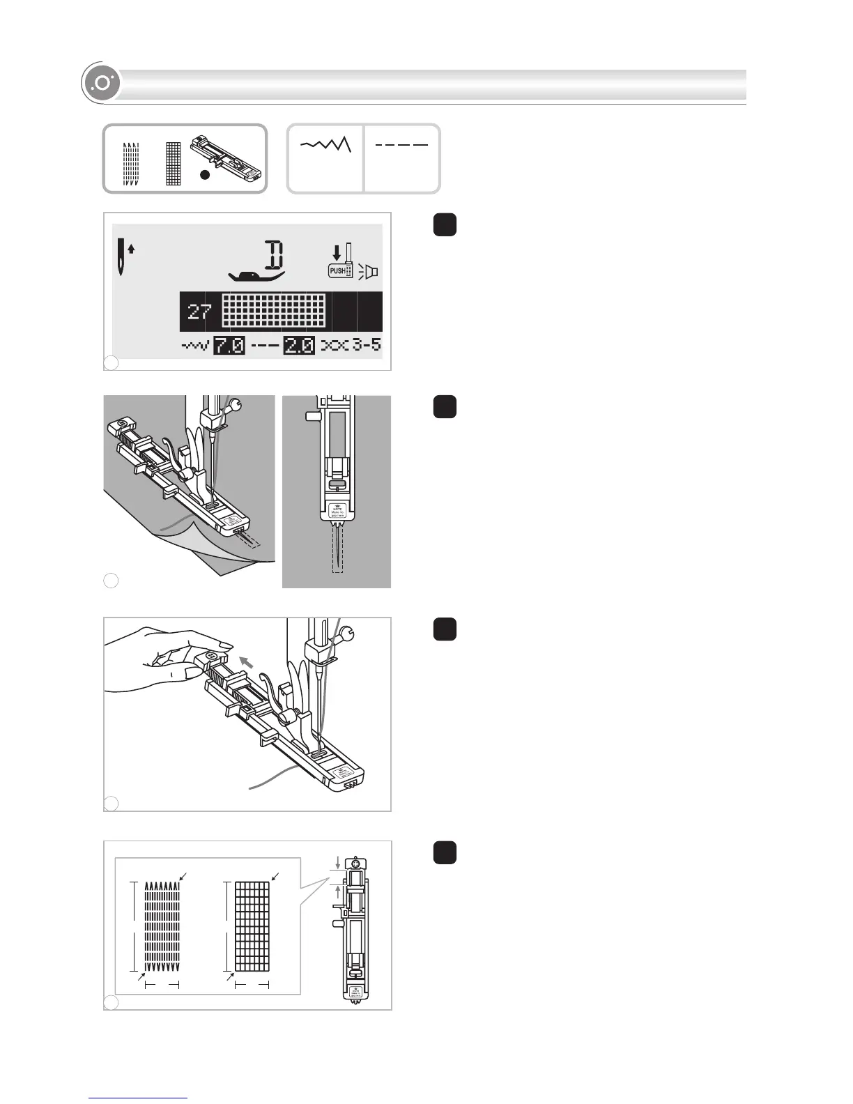 button. Lower the presser foot over the