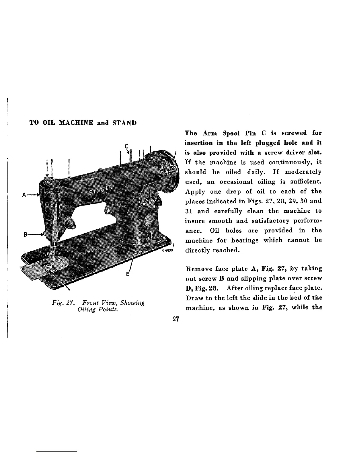 Singer 201K - To Oil Machine and Stand; Front View, Showing Oiling Point