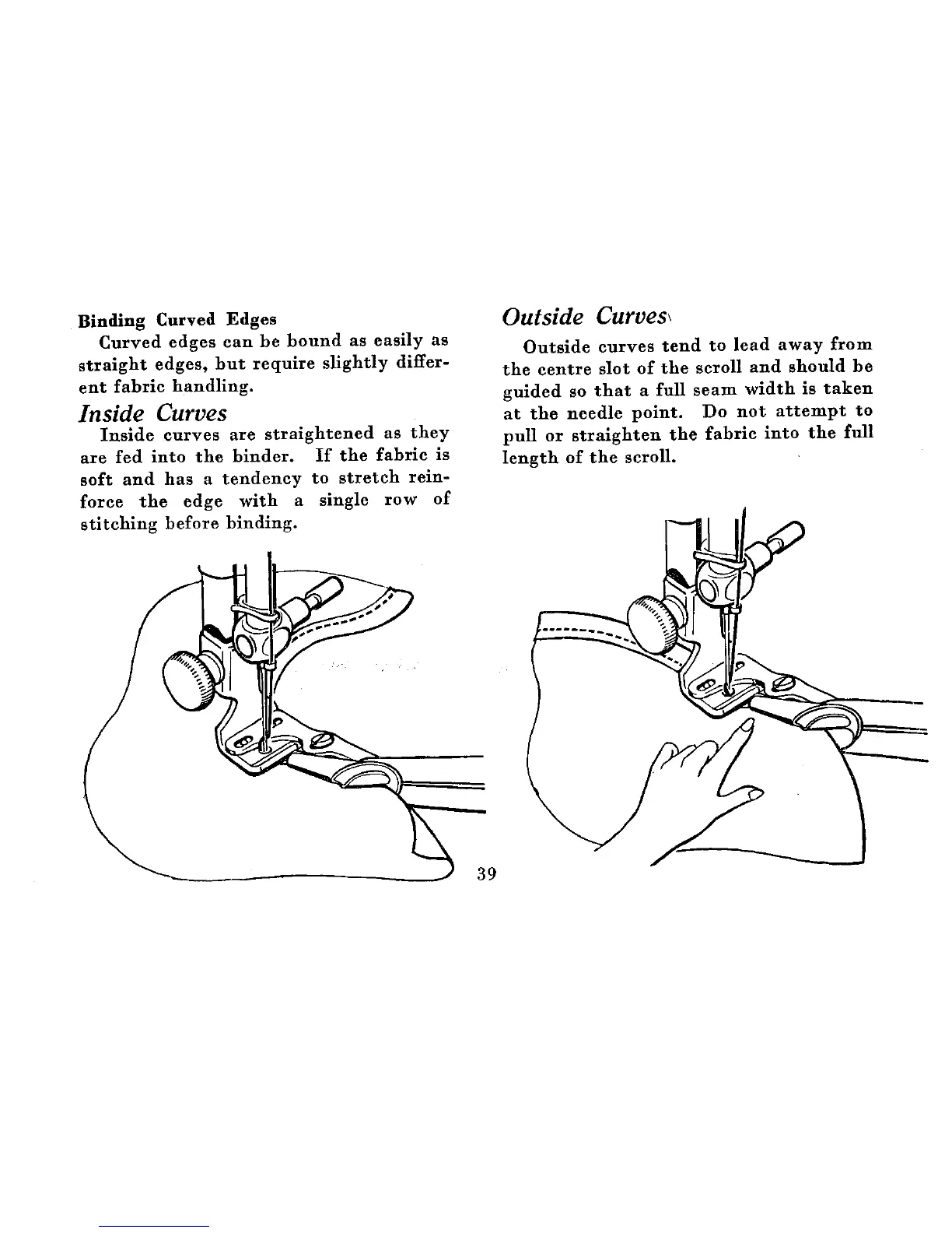 Singer 201K - Binding Curved Edges; Inside Curves; Outside Curves