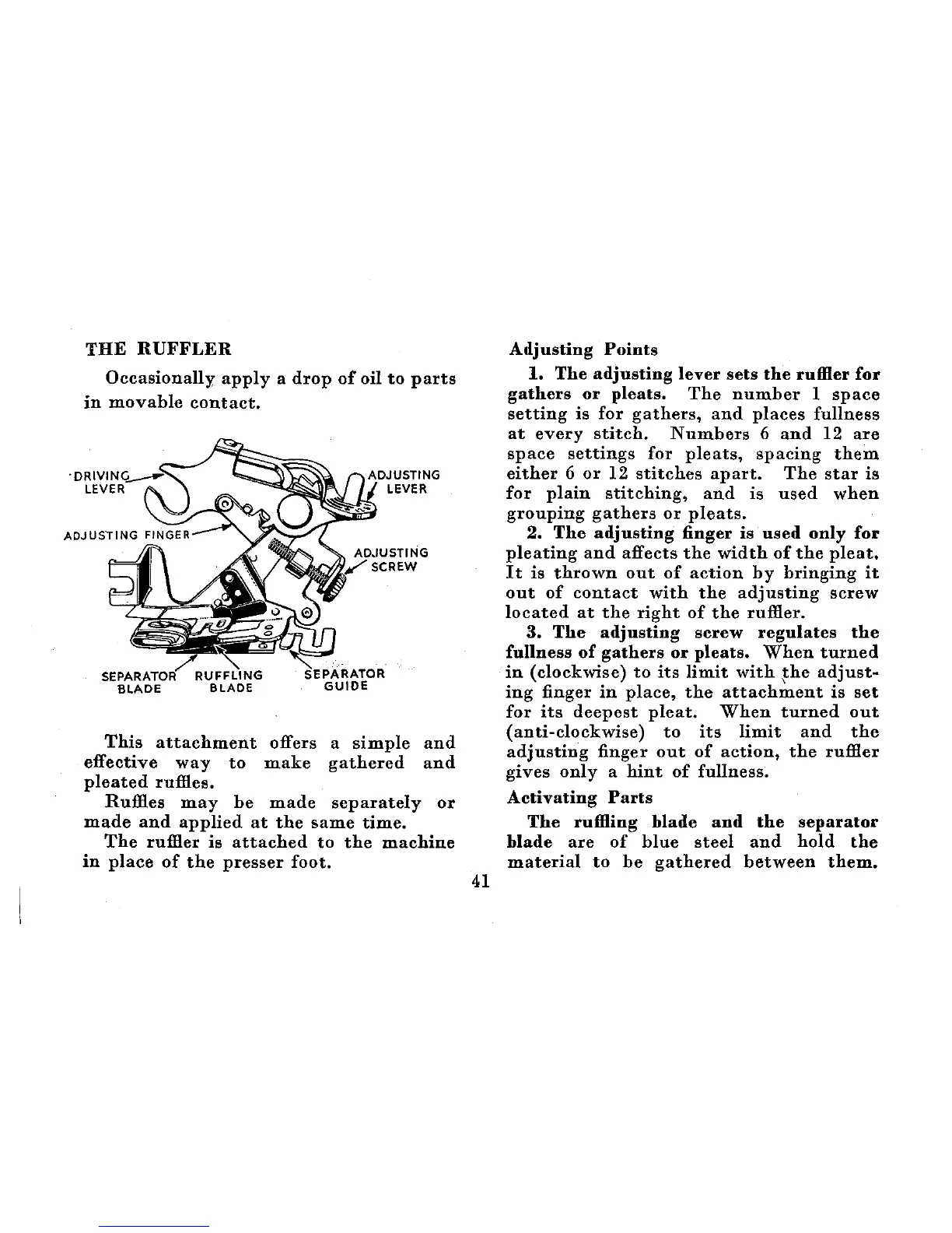 Singer 201K - The Ruffler; Adjusting Points; Activating Parts
