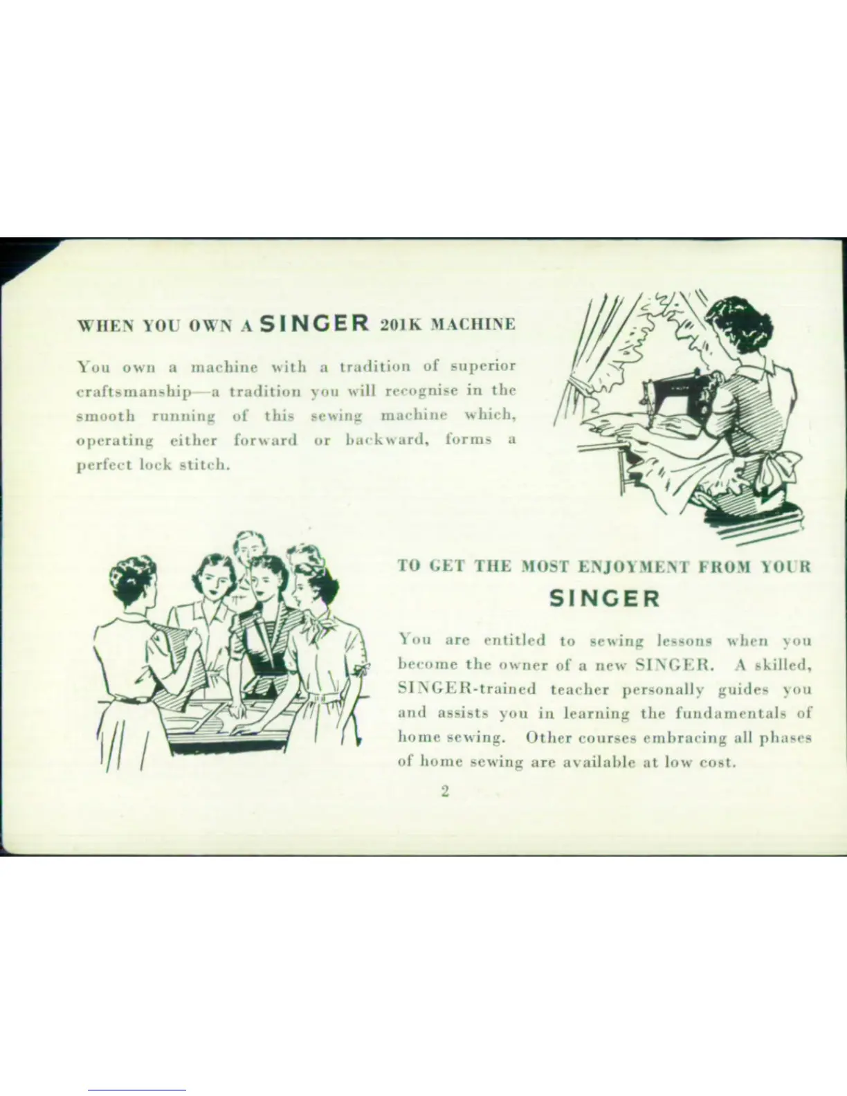 Singer 201K - Getting Started with Your SINGER 201 K; Machine Features and Owner Benefits
