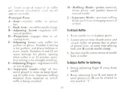 Singer 201P - Attaching and Adjusting the Ruffler; Attaching the Ruffler; Ruffler for Gathering
