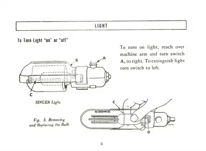 Singer 201P - Machine Light; Operating the Light