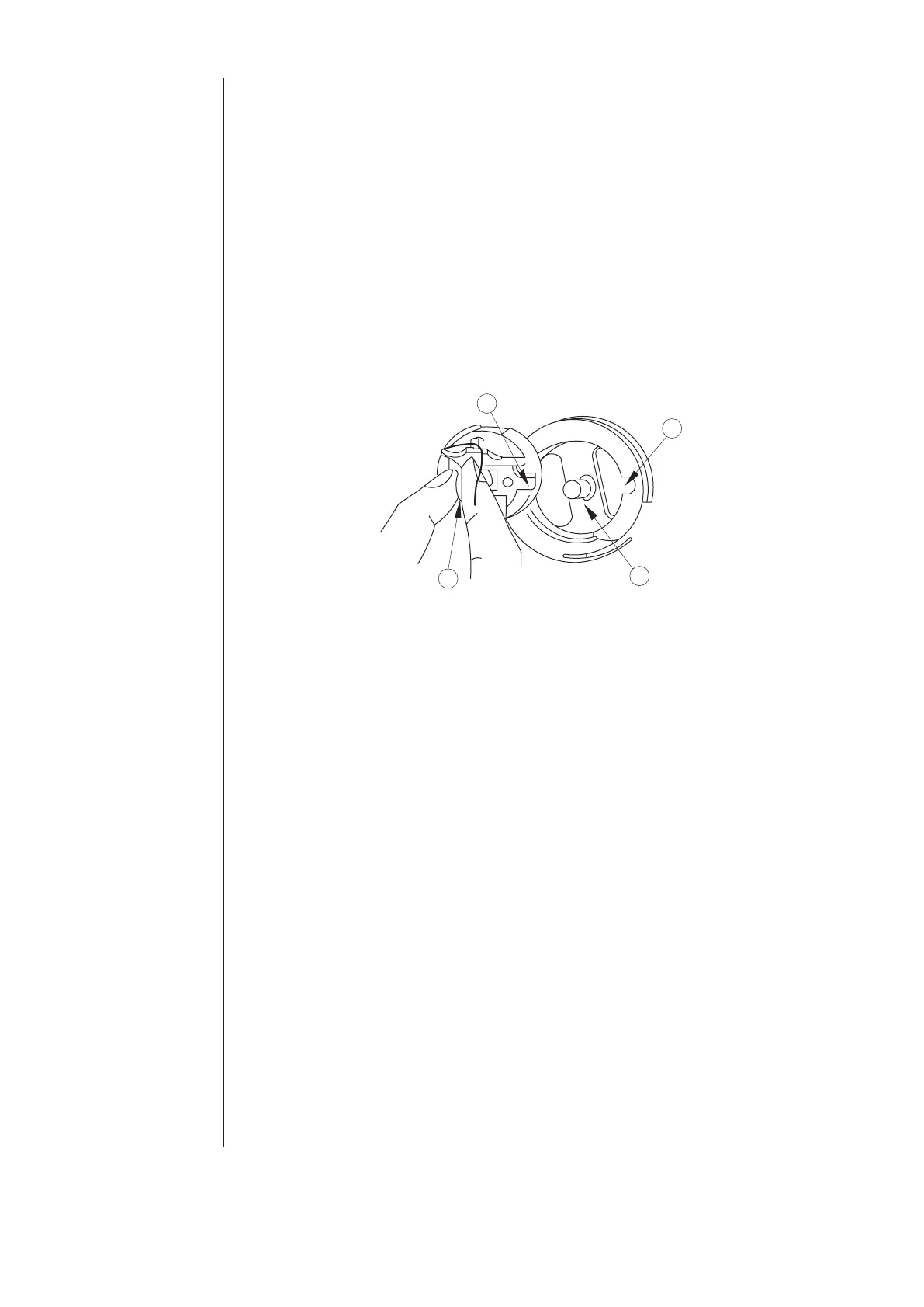 Hold bobbin case by latch ‘1’ and