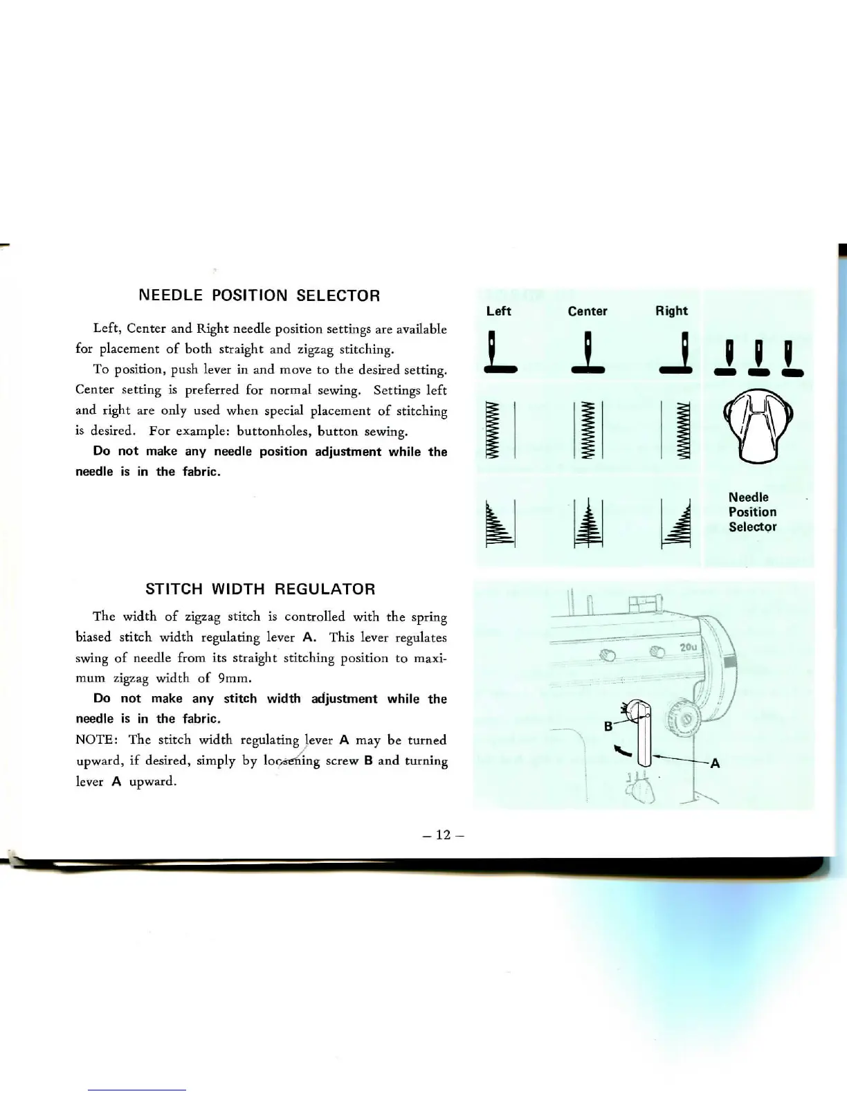 normal sewing. Settings left