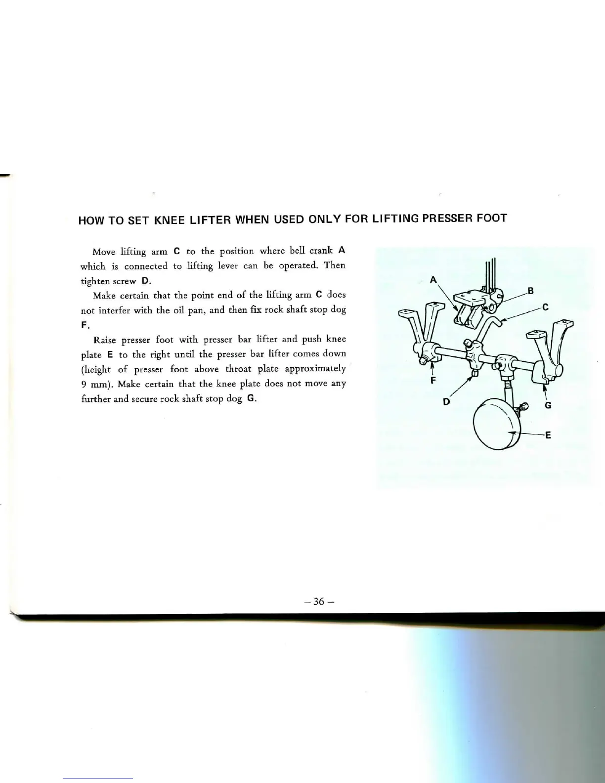 Singer 20U - How to Set Knee Lifter When Used Only for Lifting Presser Foot