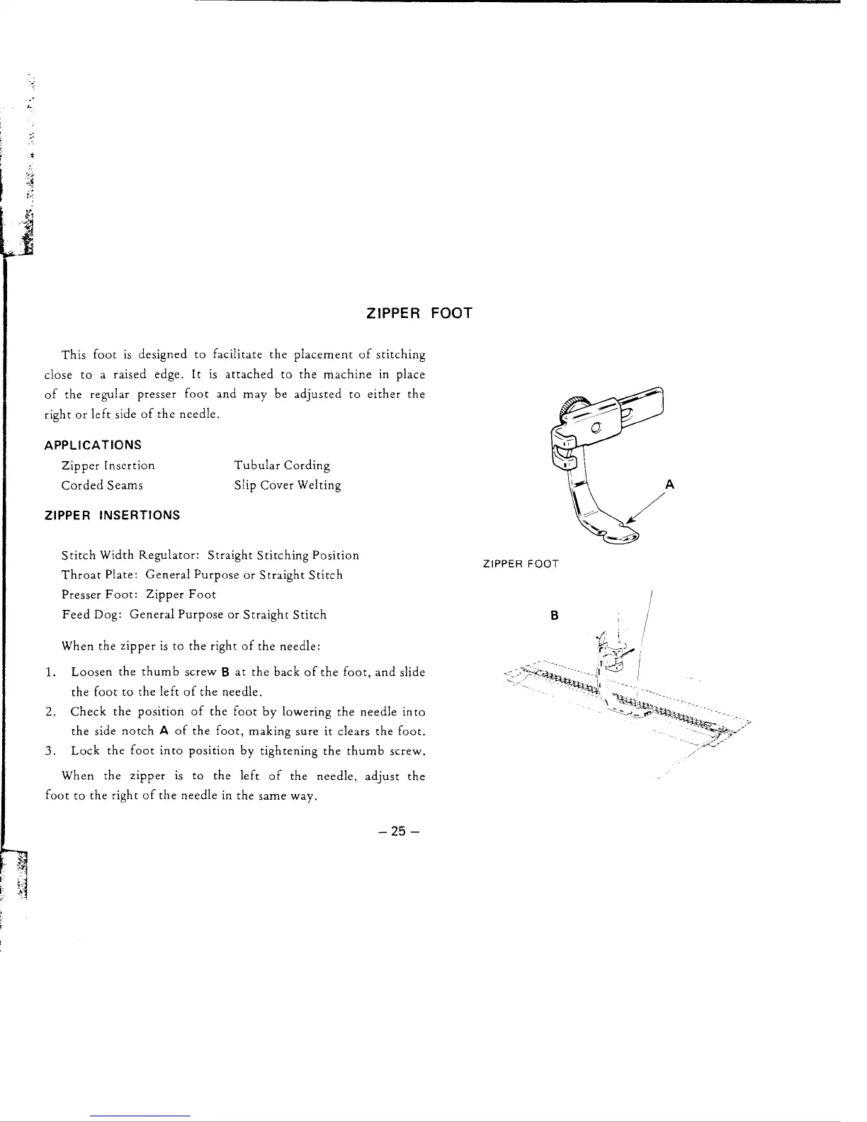 Singer 20UX143 - Specialized Attachments; Zipper Foot Applications