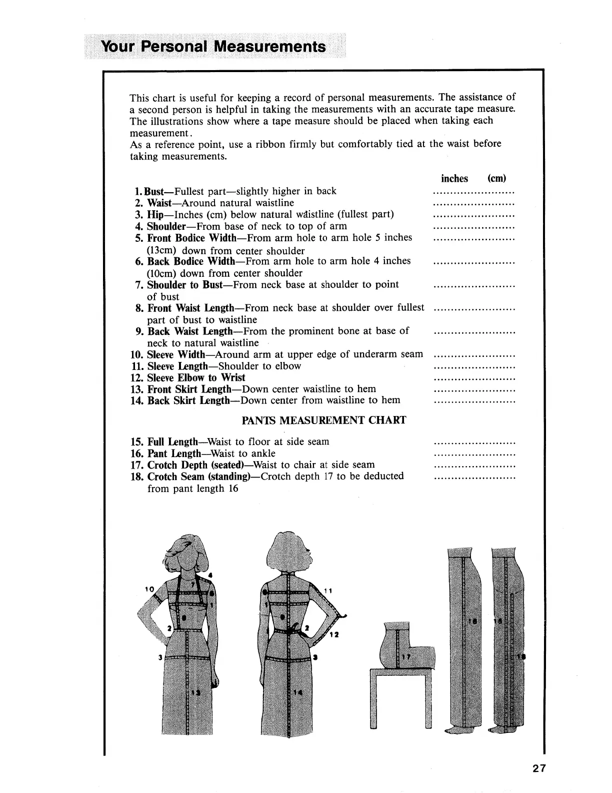 Singer 2114 - Your Personal Measurements; Pants Measurement Chart
