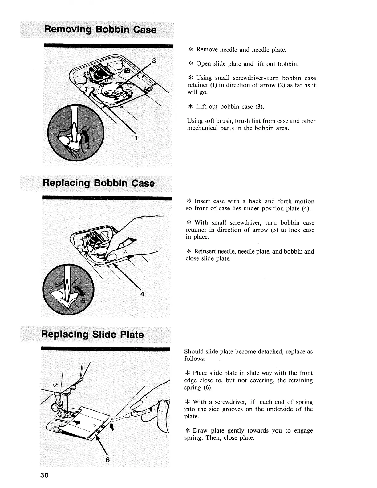 Singer 2114 - Removing Bobbin Case; Replacing Bobbin Case; Replacing Slide Plate
