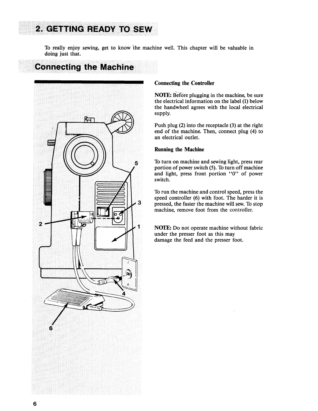 Singer 2114 - Connecting the Machine; Connecting the Controller; Running the Machine