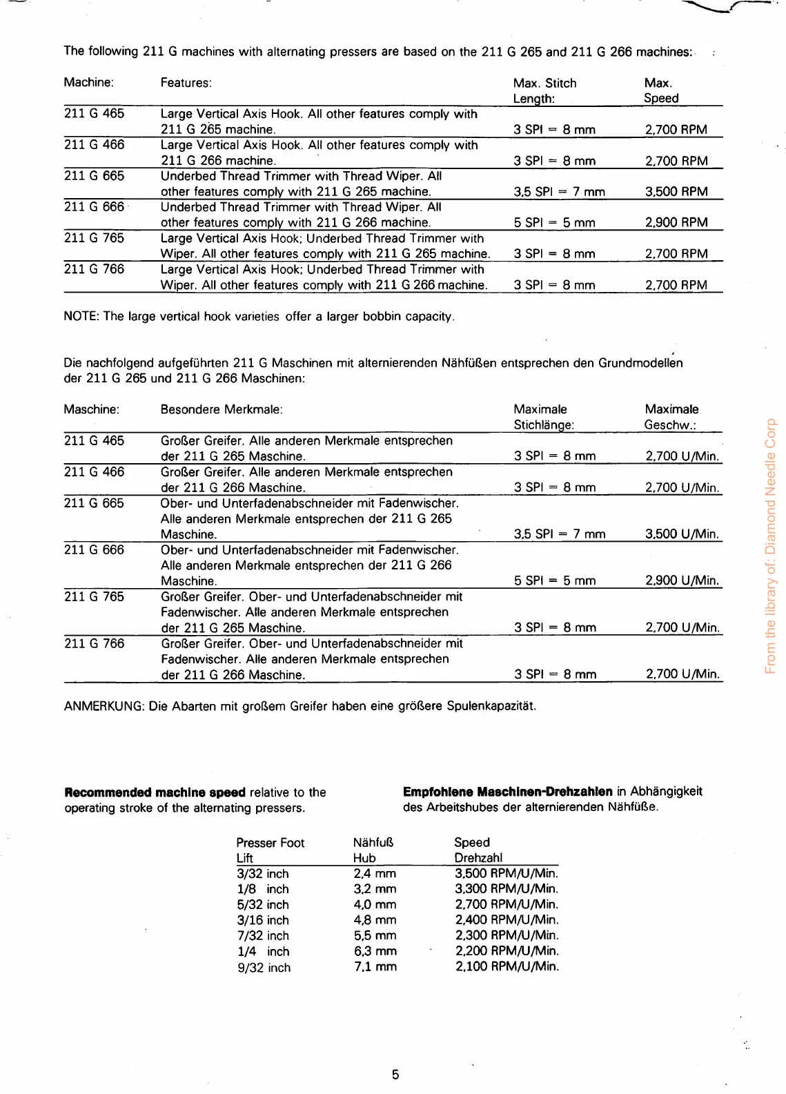 The following 211 G machines with alternating pressers are based on the 211 G 265 and 211 G 266 machines: