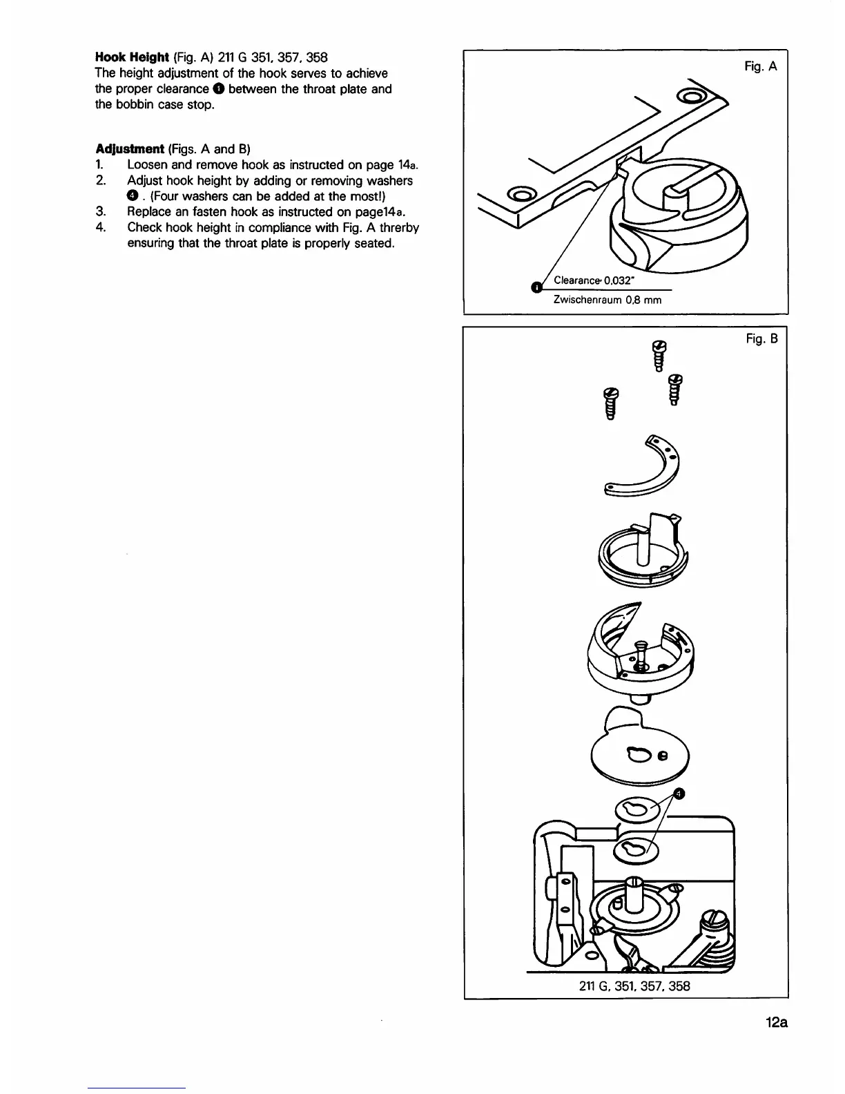 Singer 211G157 - Hook Maintenance; Hook Height Adjustment (Models 351, 357, 358)