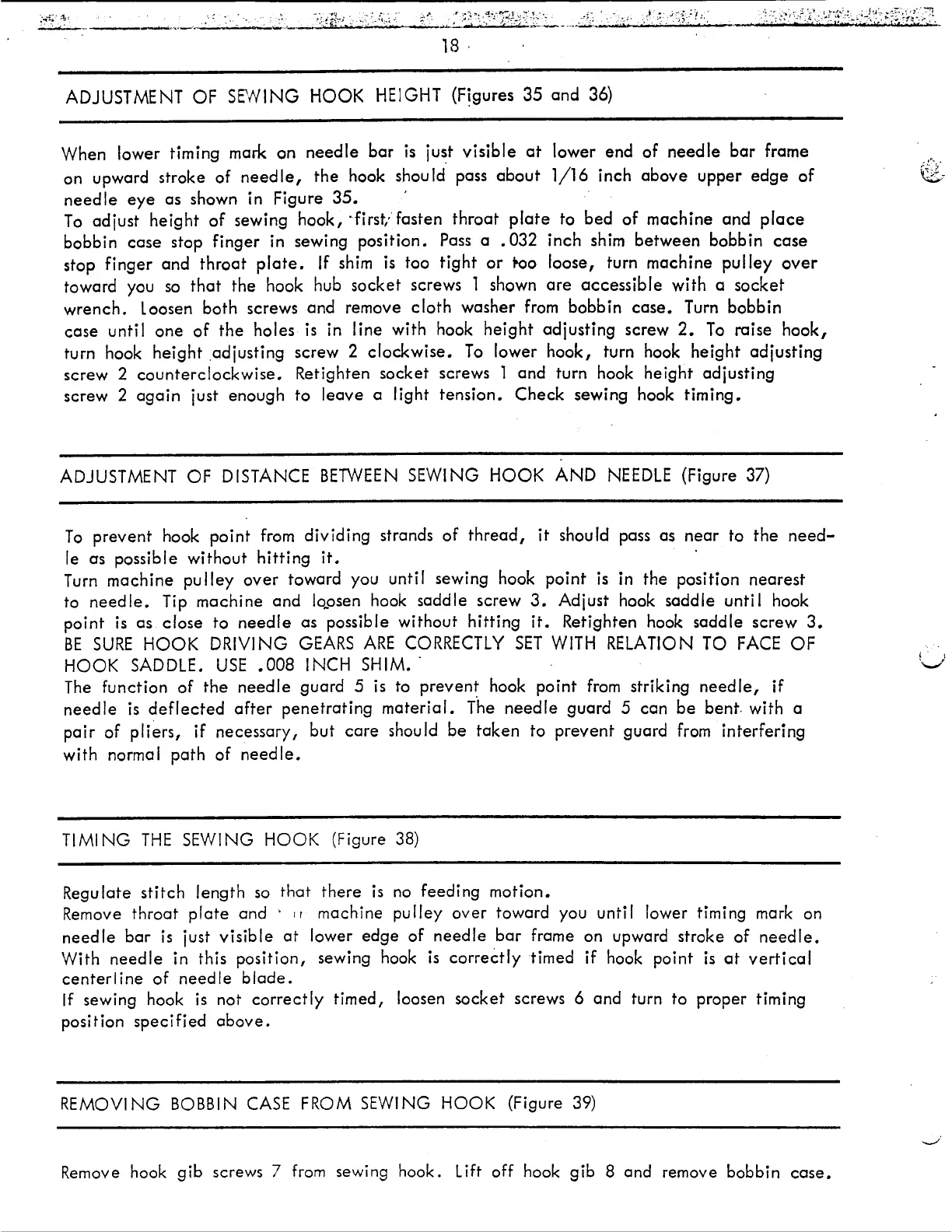 Singer 211G165 - Sewing Hook Height Adjustment; Hook-Needle Distance Adjustment; Sewing Hook Timing; Bobbin Case Removal from Hook