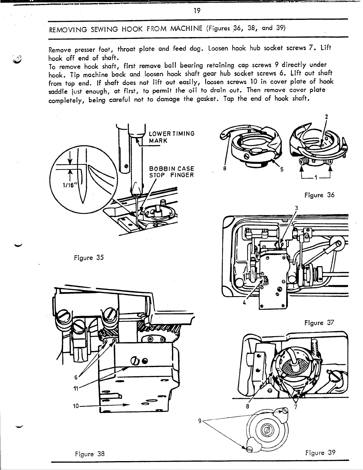 REMOVING SEWING HOOK FROM MACHINE (Figures