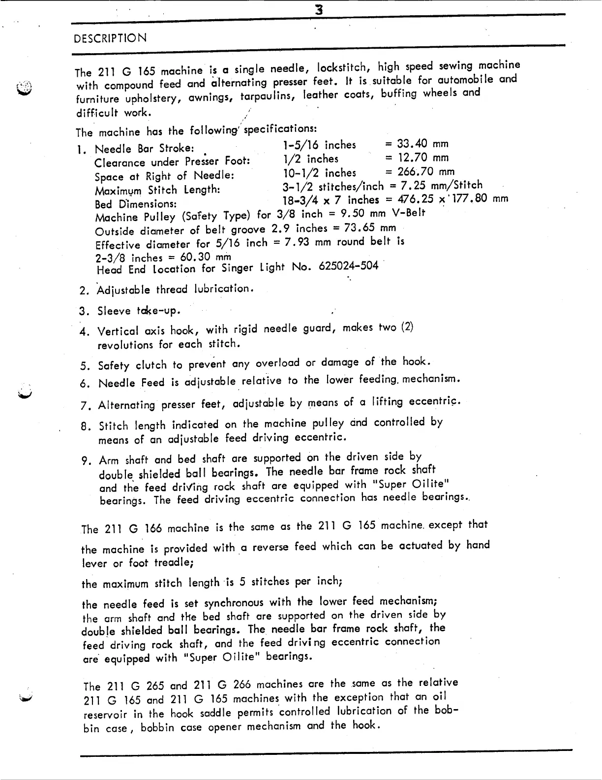 Singer 211G165 - Machine Description
