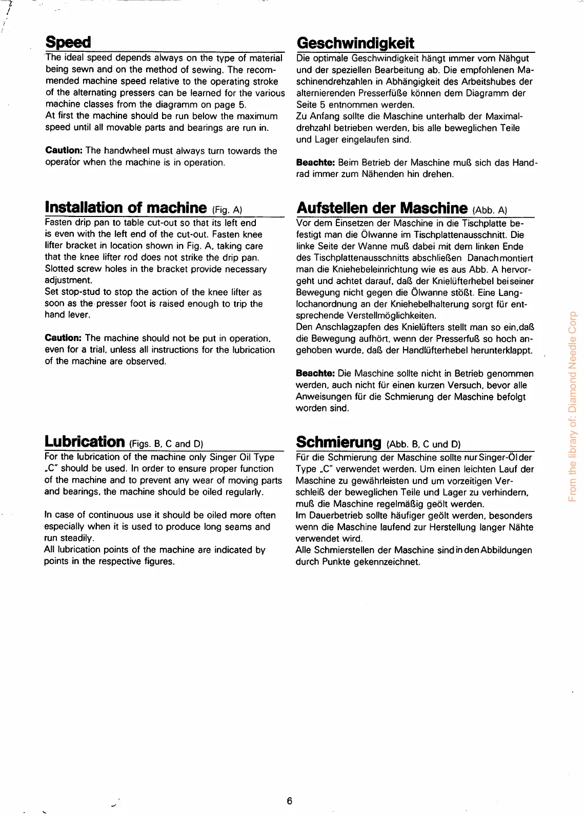 Fiirdie Schmierung der Maschine sollte nurSinger-Older