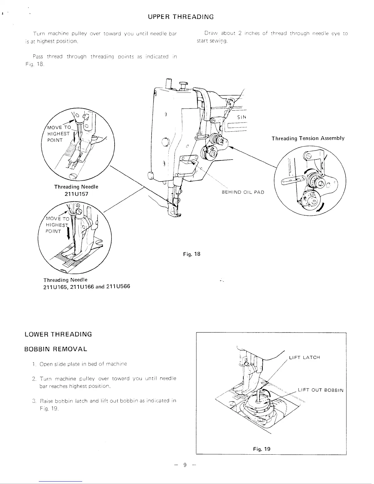 Singer 211U166A - UPPER THREADING; LOWER THREADING; BOBBIN REMOVAL