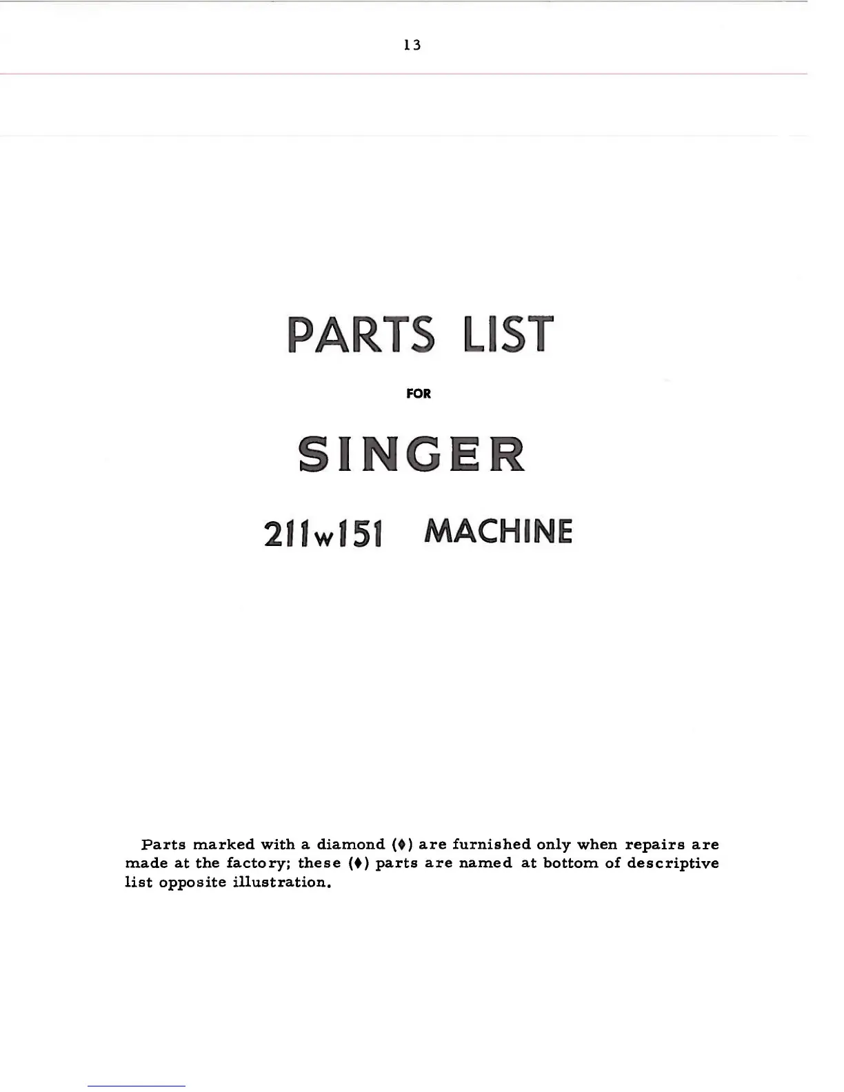Singer 211W151 - Parts List
