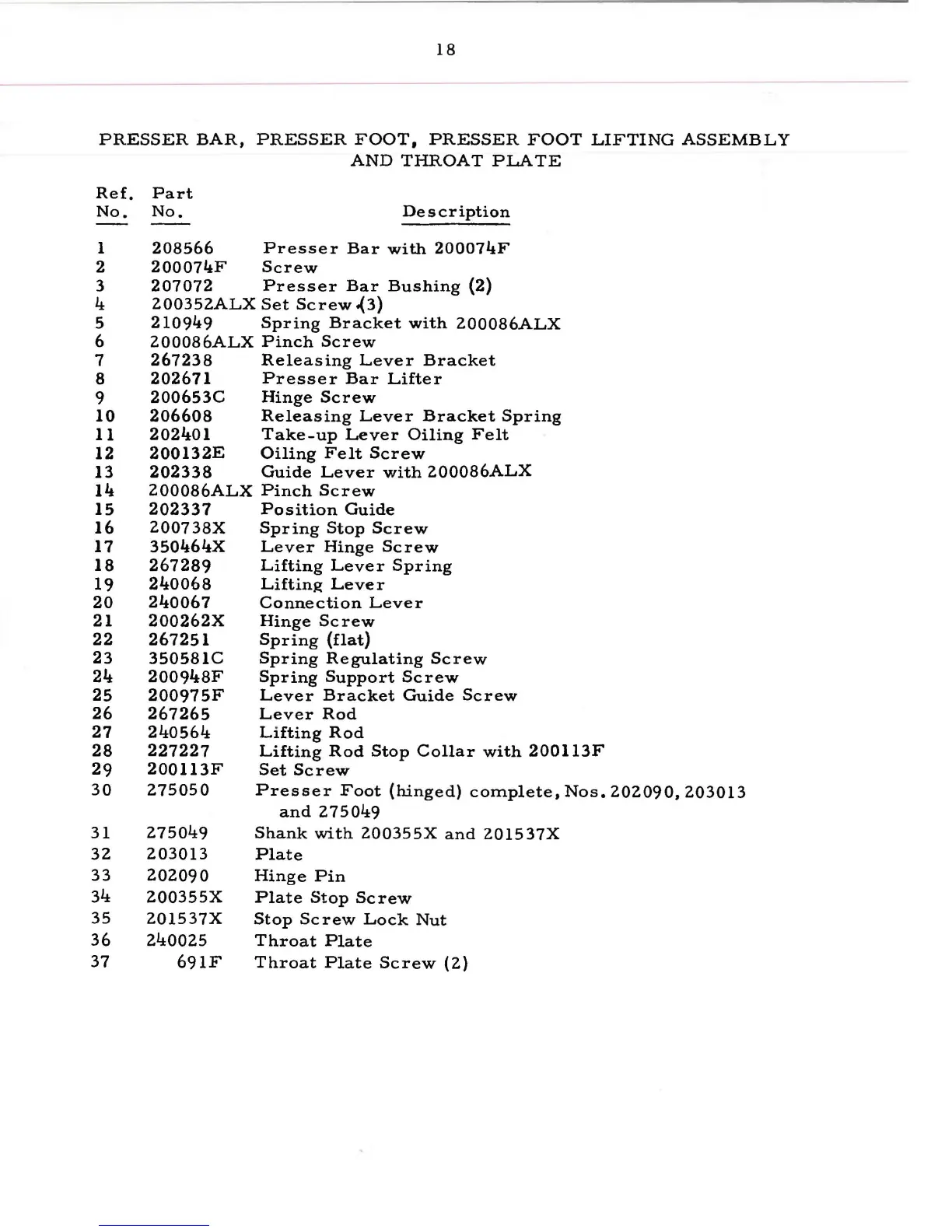 Singer 211W151 - Presser Bar, Presser Foot, Presser Foot Lifting Assembly