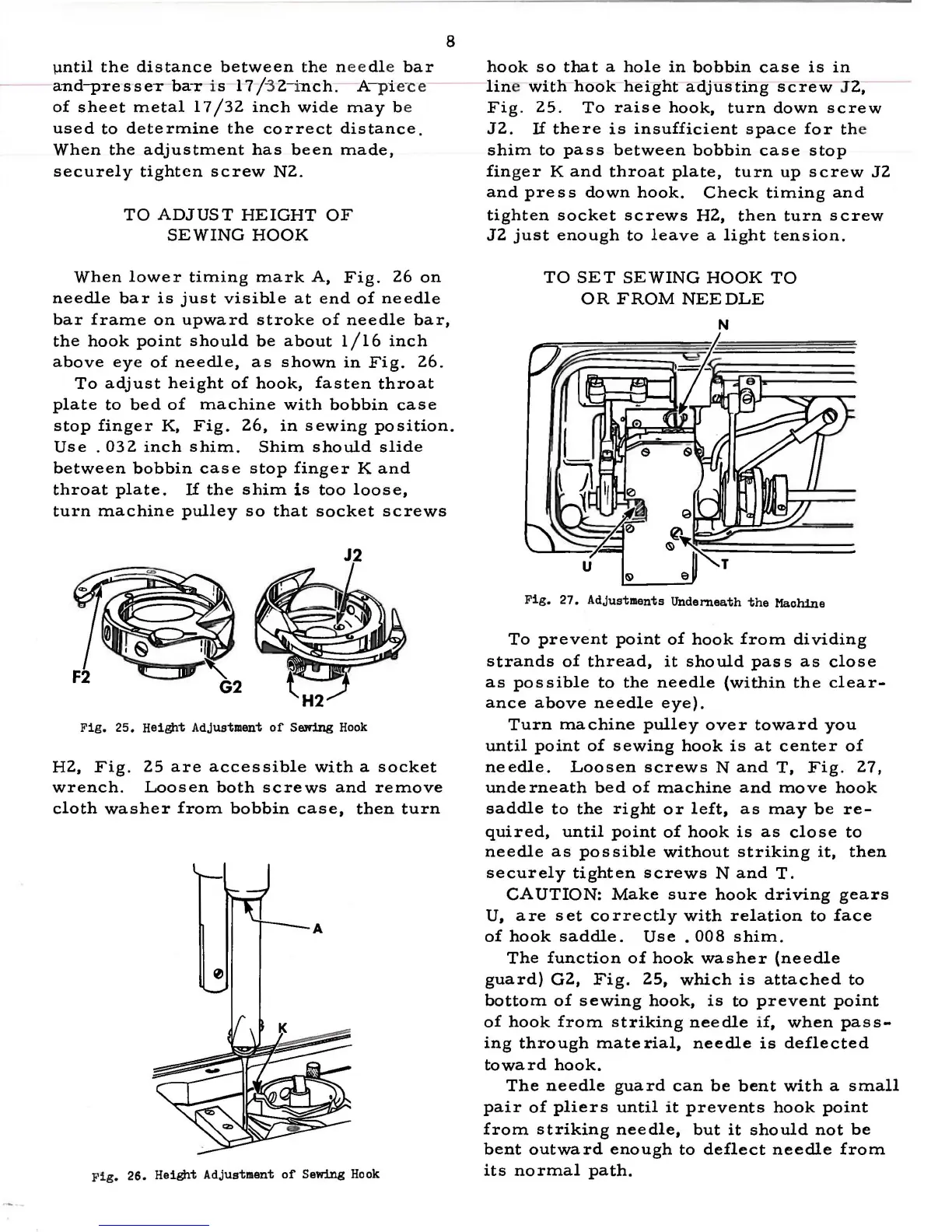 Singer 211W151 - Sewing Hook Adjustments; Adjusting Hook Height; Setting Sewing Hook Alignment