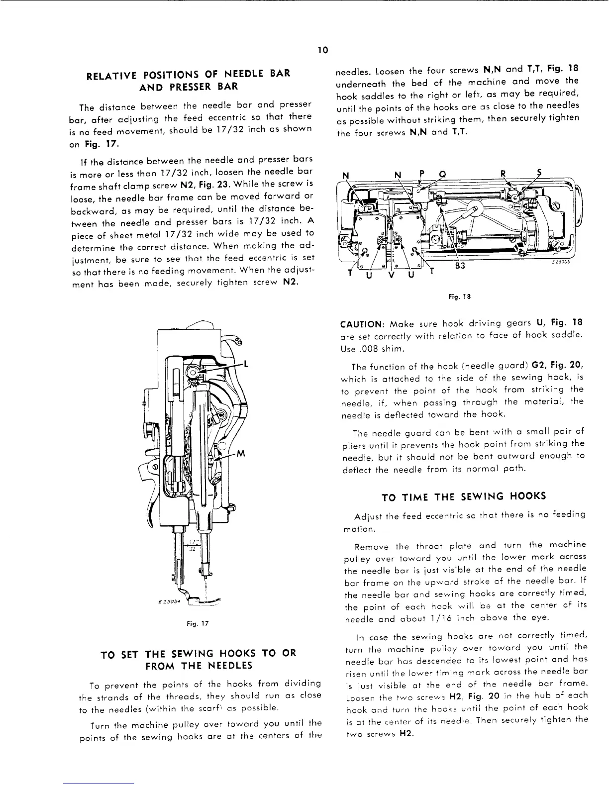 Singer 212W140 - Relative Positions of Needle Bar and Presser Bar; To Set the Sewing Hooks to or from the Needles; To Time the Sewing Hooks