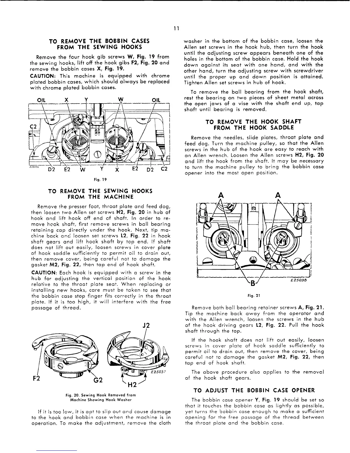 Singer 212W140 - To Remove the Bobbin Cases from the Sewing Hooks; To Remove the Sewing Hooks from the Machine; To Remove the Hook Shaft from the Hook Saddle; To Adjust the Bobbin Case Opener