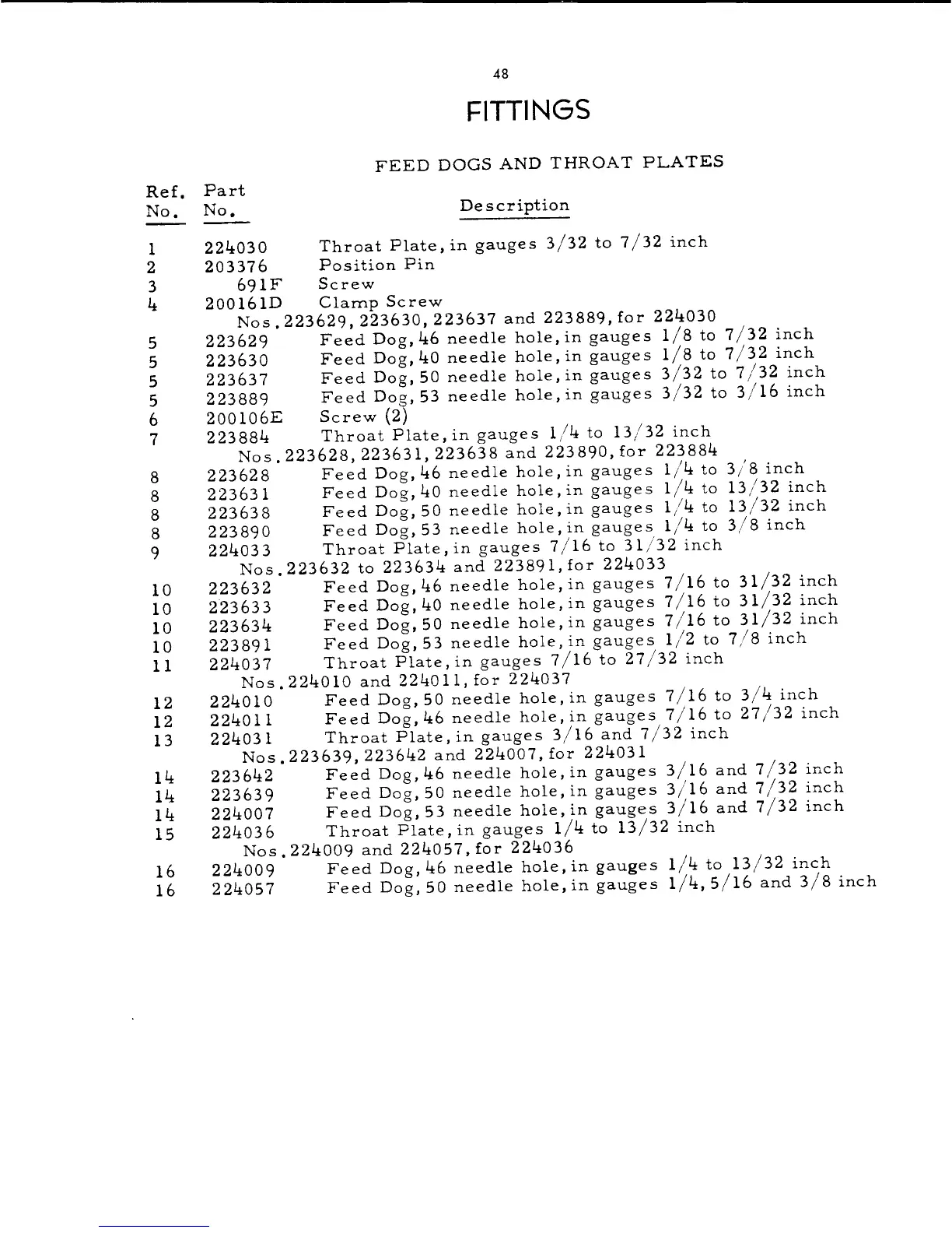 Singer 212W140 - Fittings; Feed Dogs and Throat Plates