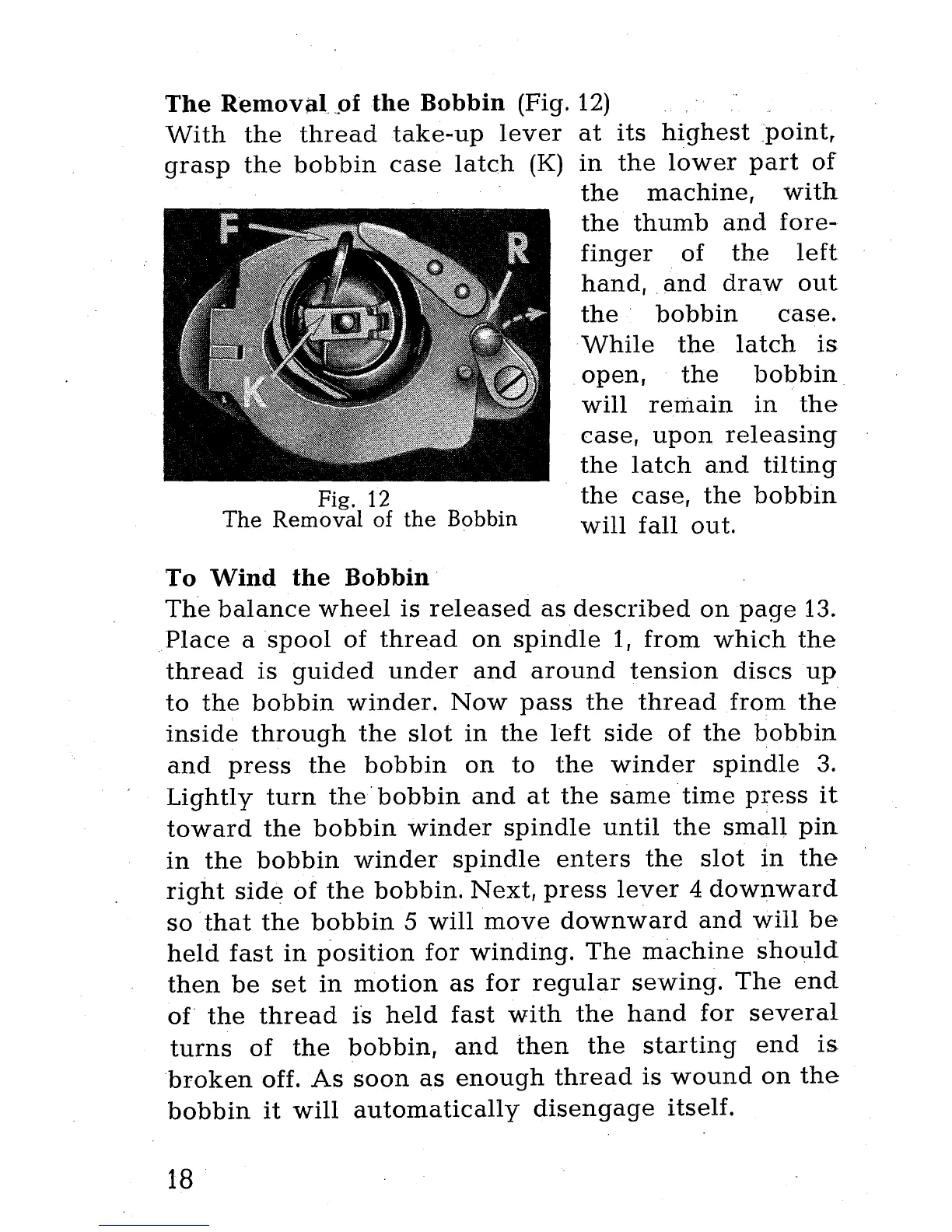 Singer 216G - The Removal of the Bobbin; To Wind the Bobbin