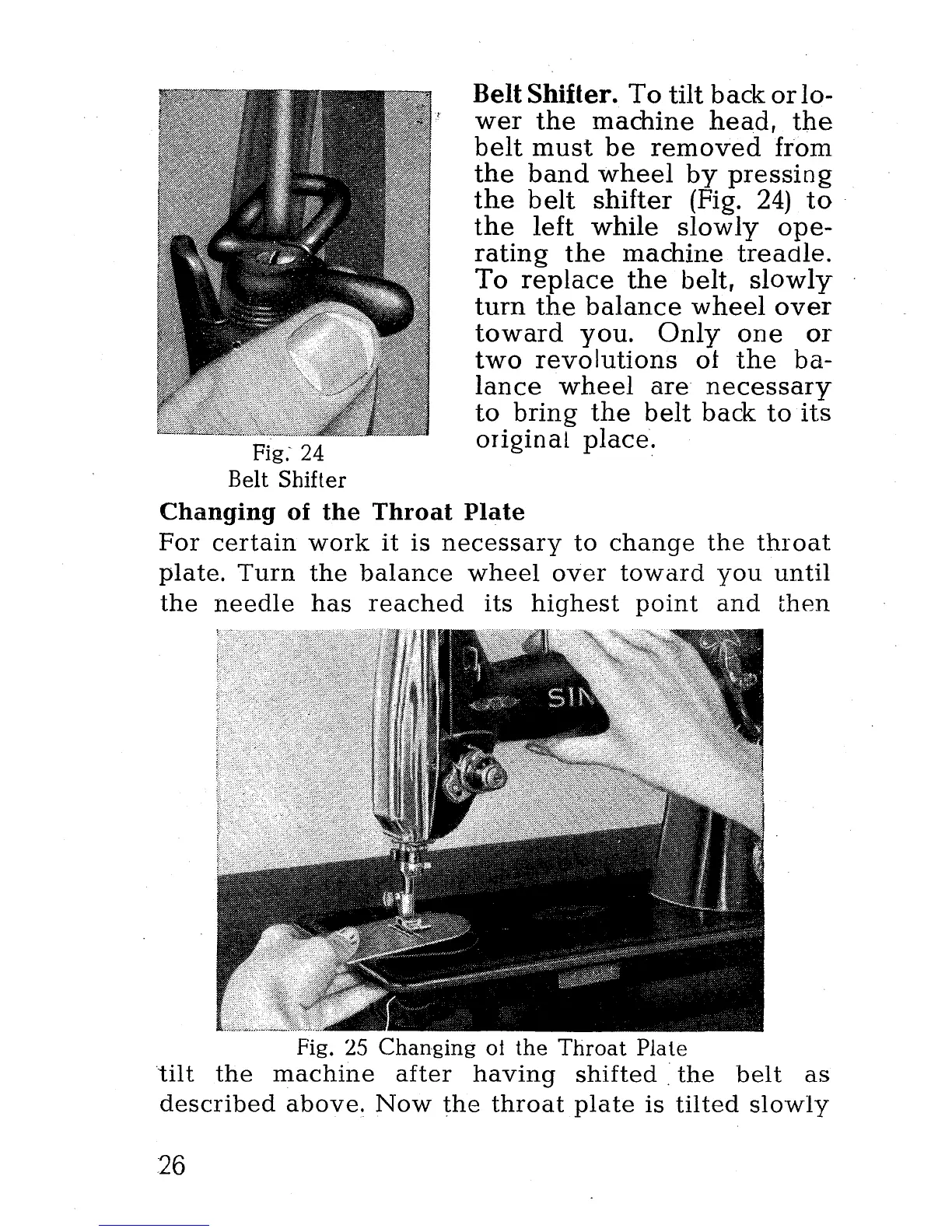 Singer 216G - Belt Shifter; Changing of the Throat Plate