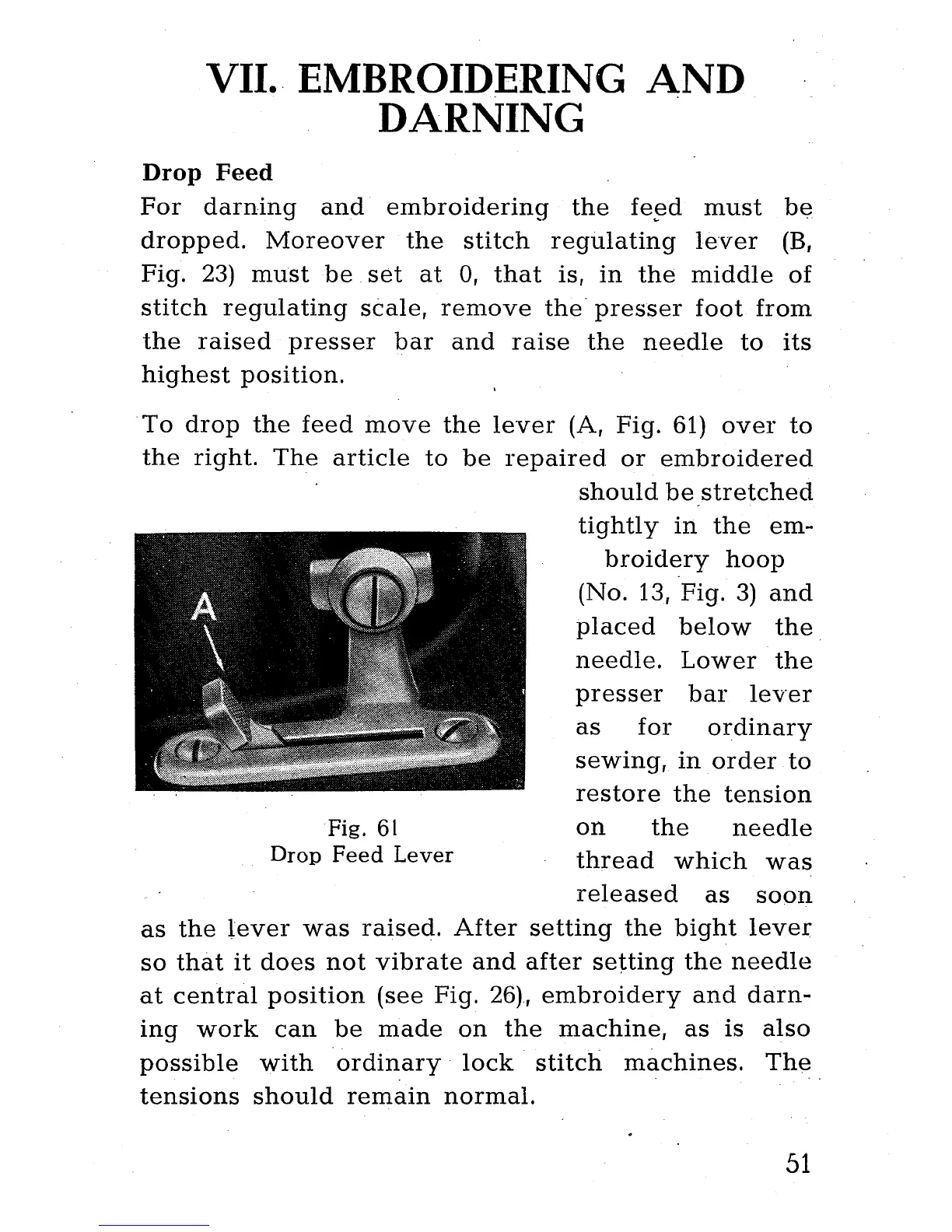 Singer 216G - Embroidering and Darning; Drop Feed Operation for Embroidery and Darning