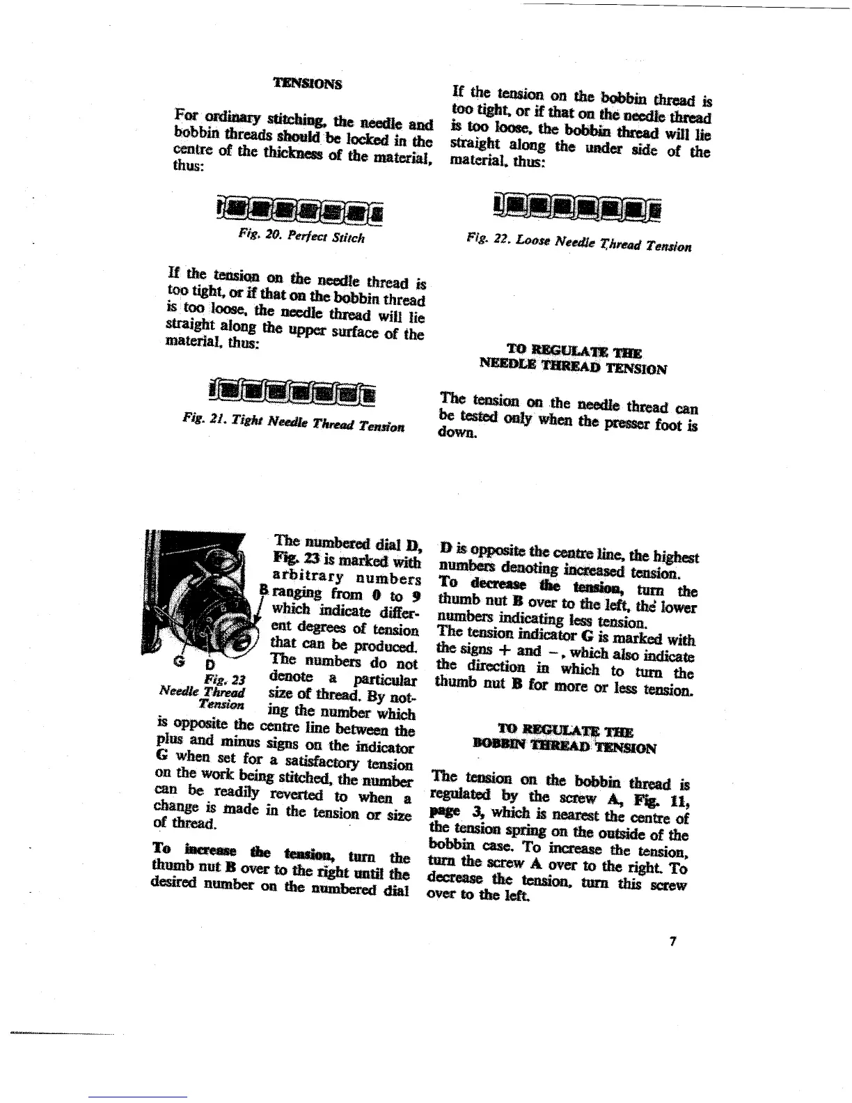 Singer 221 - Thread Tension Regulation; Regulating Needle Thread Tension; Regulating Bobbin Thread Tension