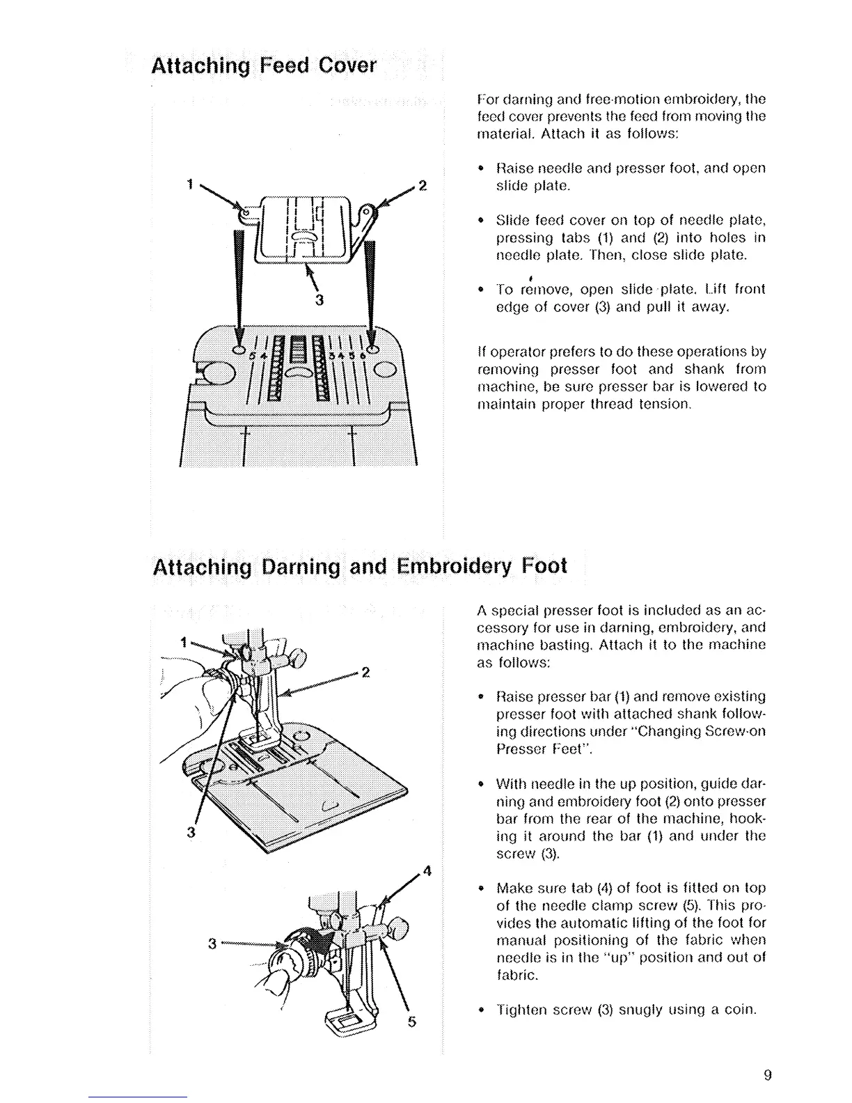 Singer 2210 - Attaching Feed Cover; Attaching Darning and Embroidery Foot