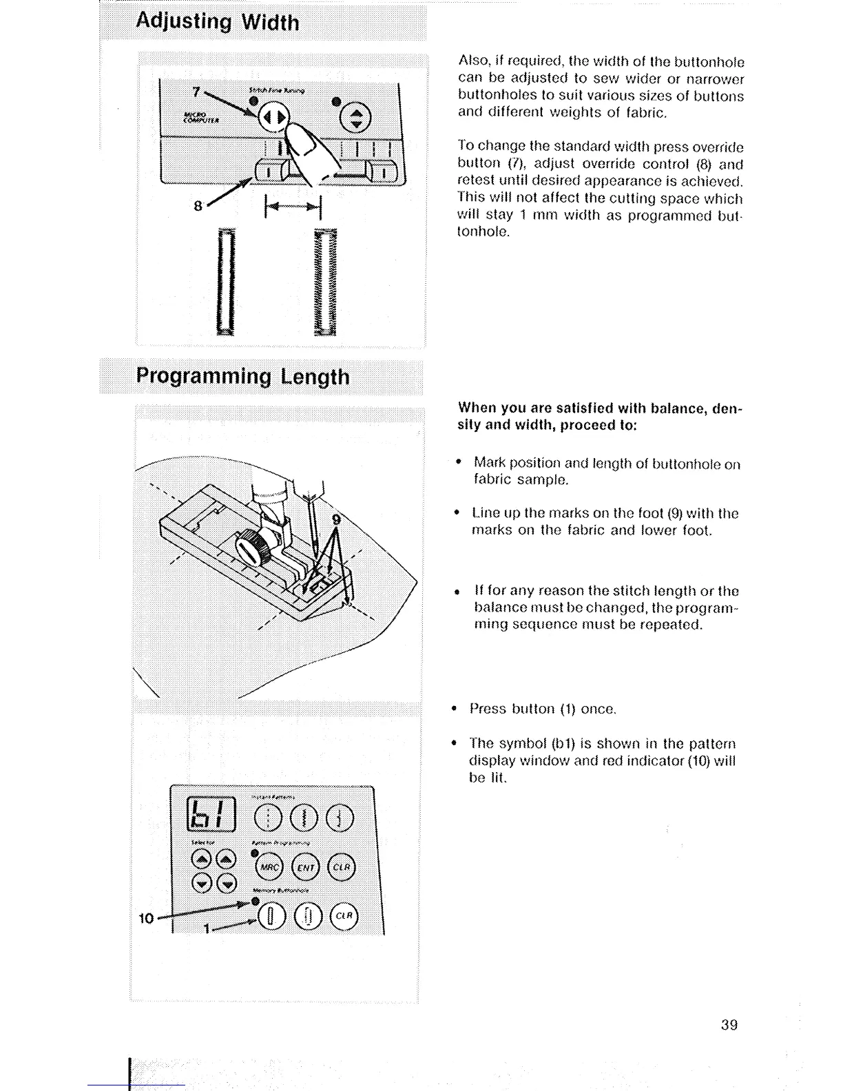 Singer 2210 - Adjusting Width; Programming Length