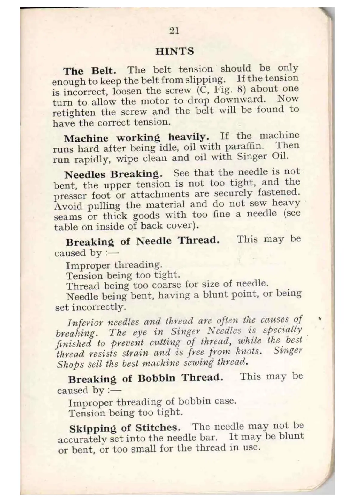 Singer 221K - HINTS AND TROUBLESHOOTING; Common Sewing Issues